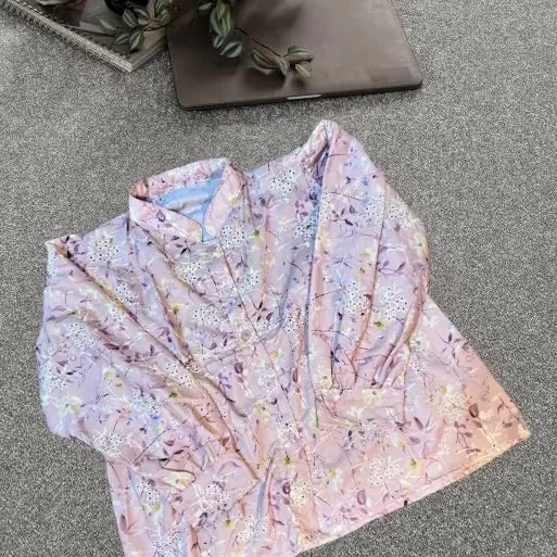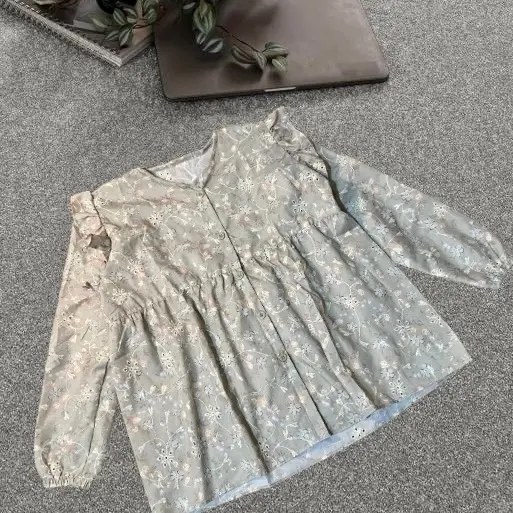 Model: blouse longgar, kancing depan, bisa dimasukkan atau dibiarkan menjuntai