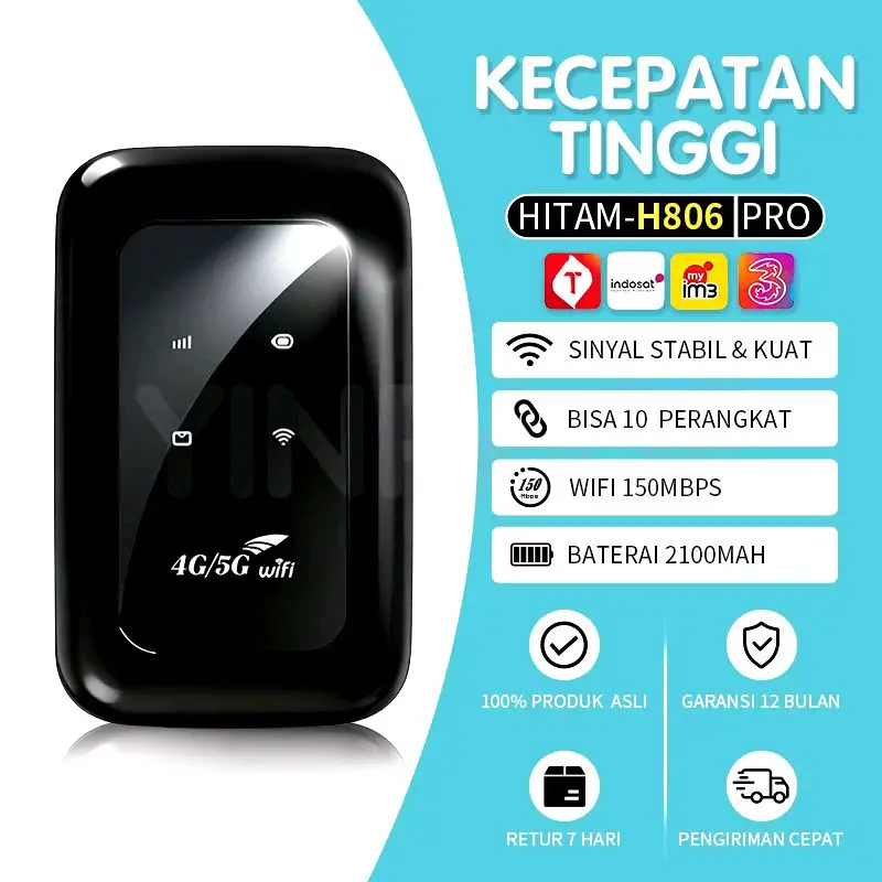 Modem Mifi 5G Hitam-H806 Pro dengan Kecepatan Tinggi, Sinyal Stabil, Bisa 10 Perangkat, WiFi 150Mbps, Baterai 2100mAh, Garansi 12 Bulan