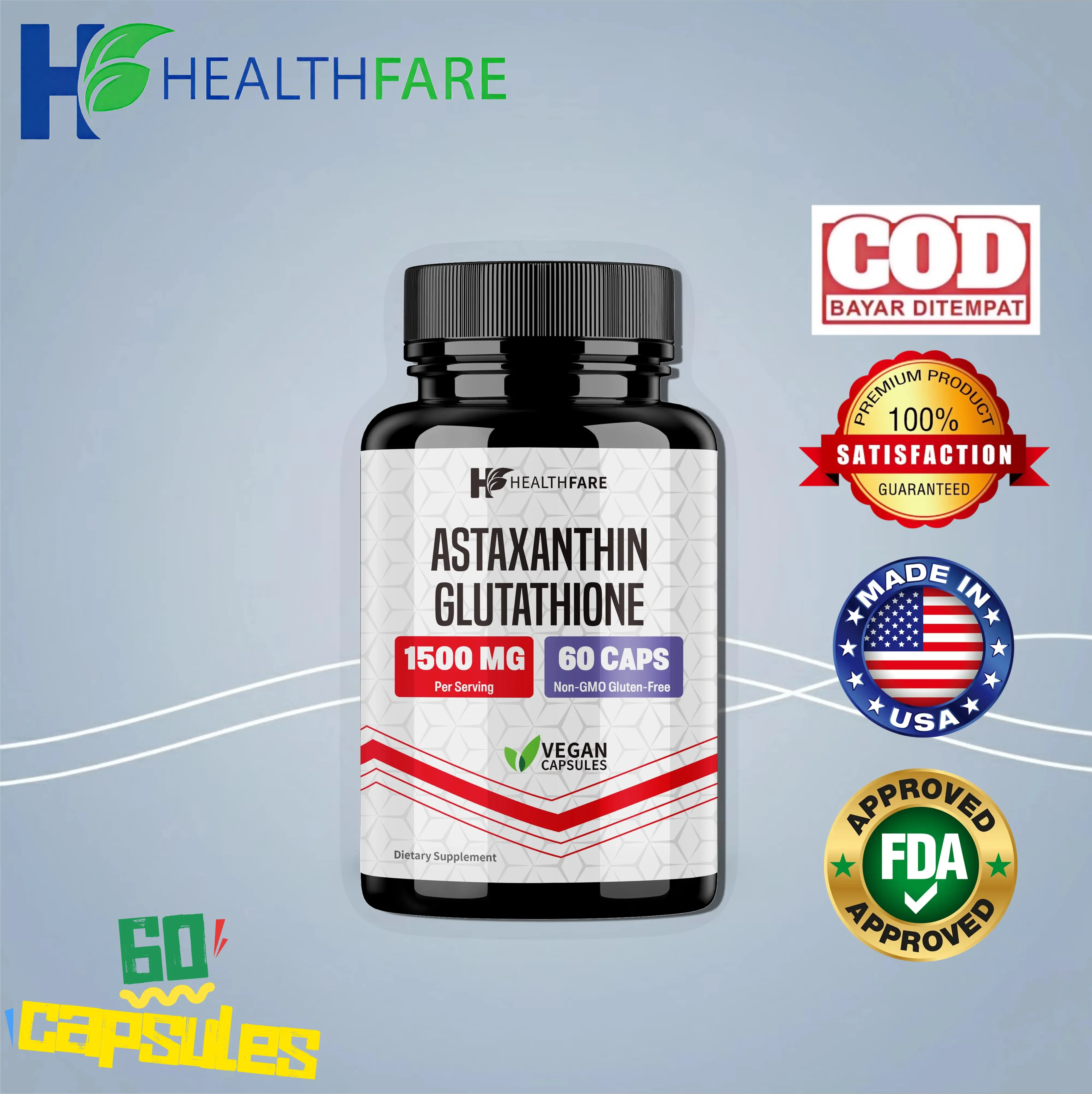 Astaxanthin + Glutathione Spesial Ramadan, Firms skin, fades dark spots, and delays aging. 60 capsules