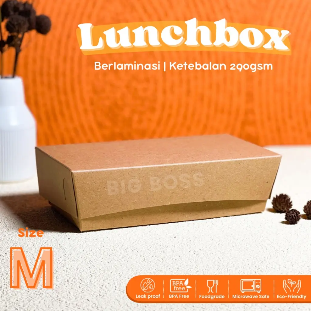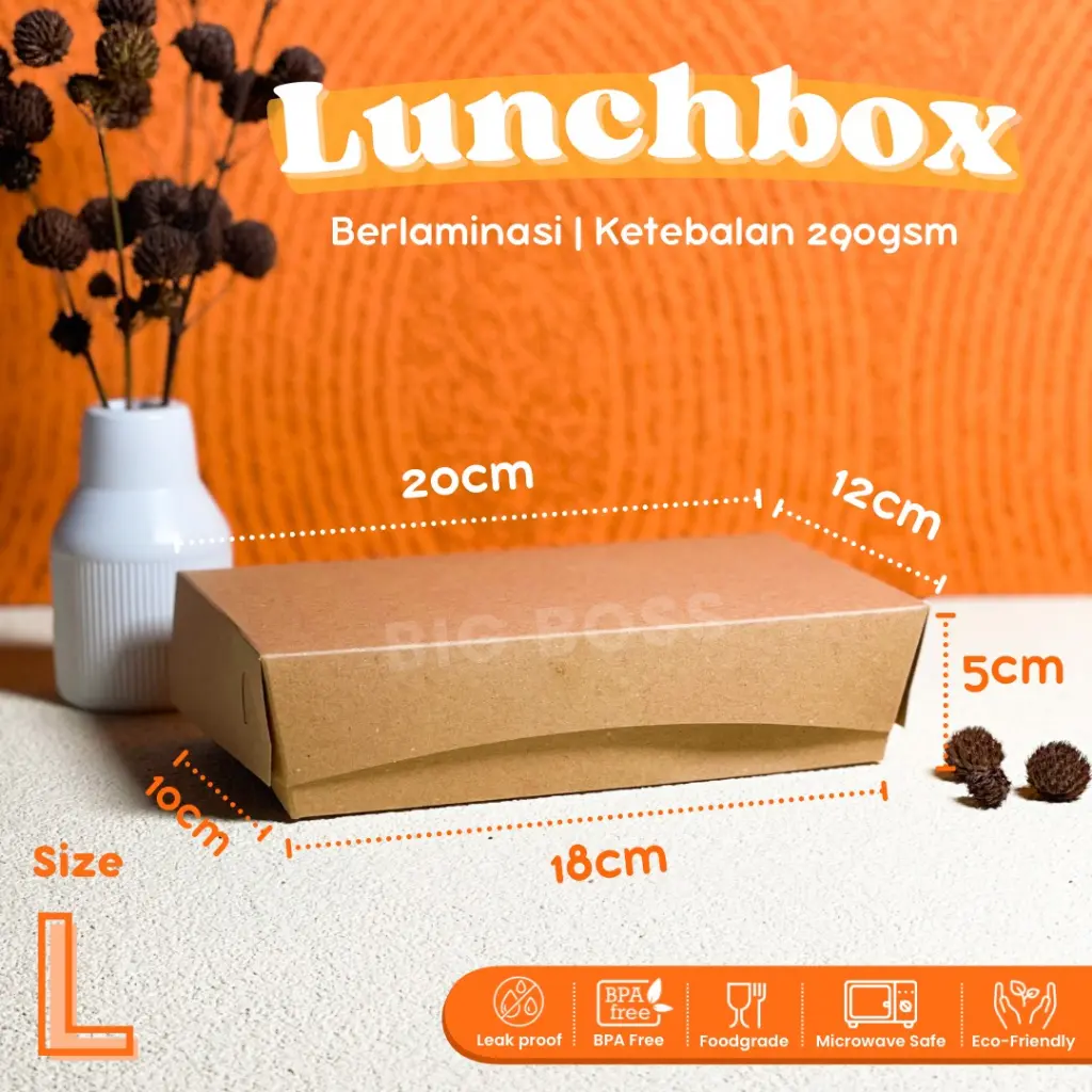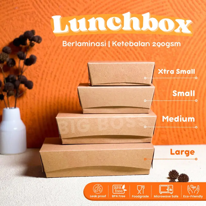 Paper Lunch Box Kraft Polos Laminasi / Kotak Makan Kertas Size S M L (SISTEM SELIP)