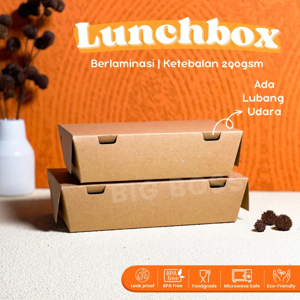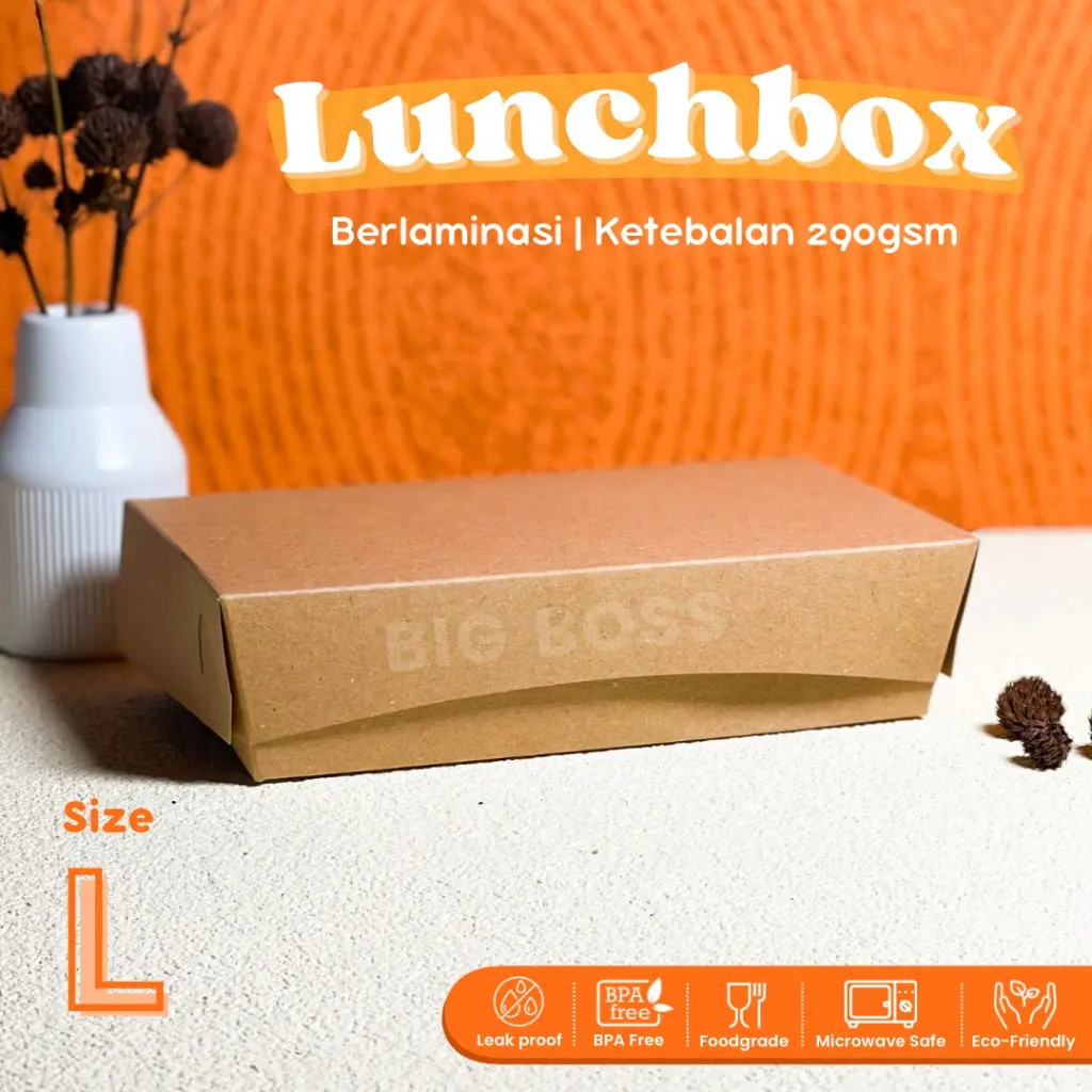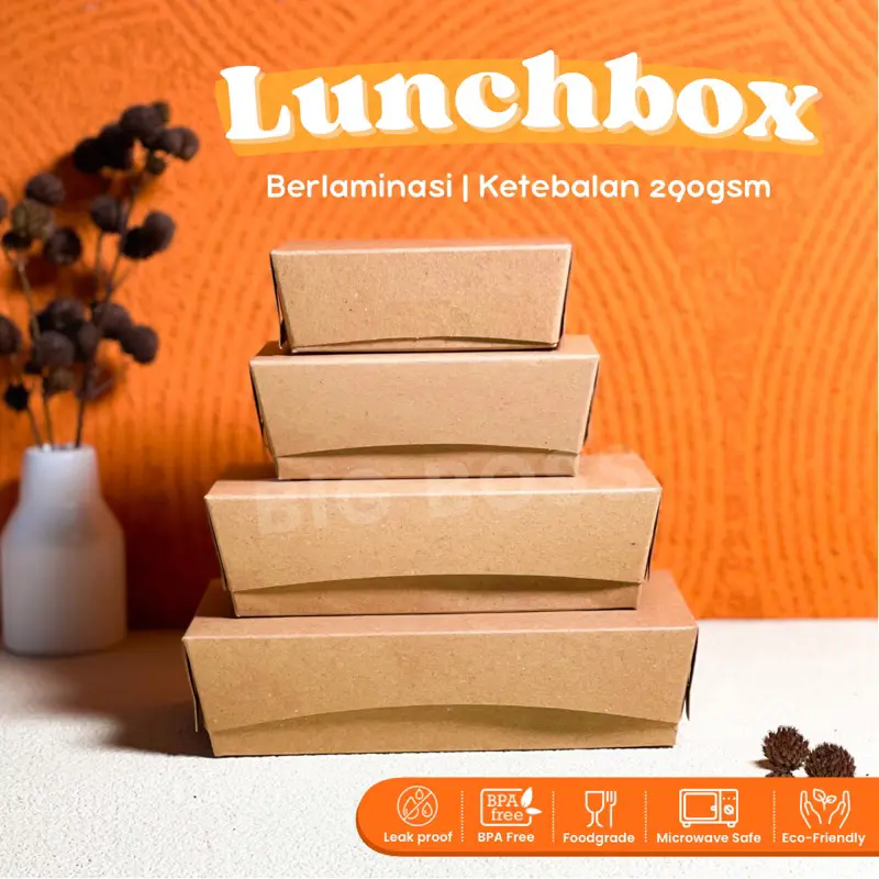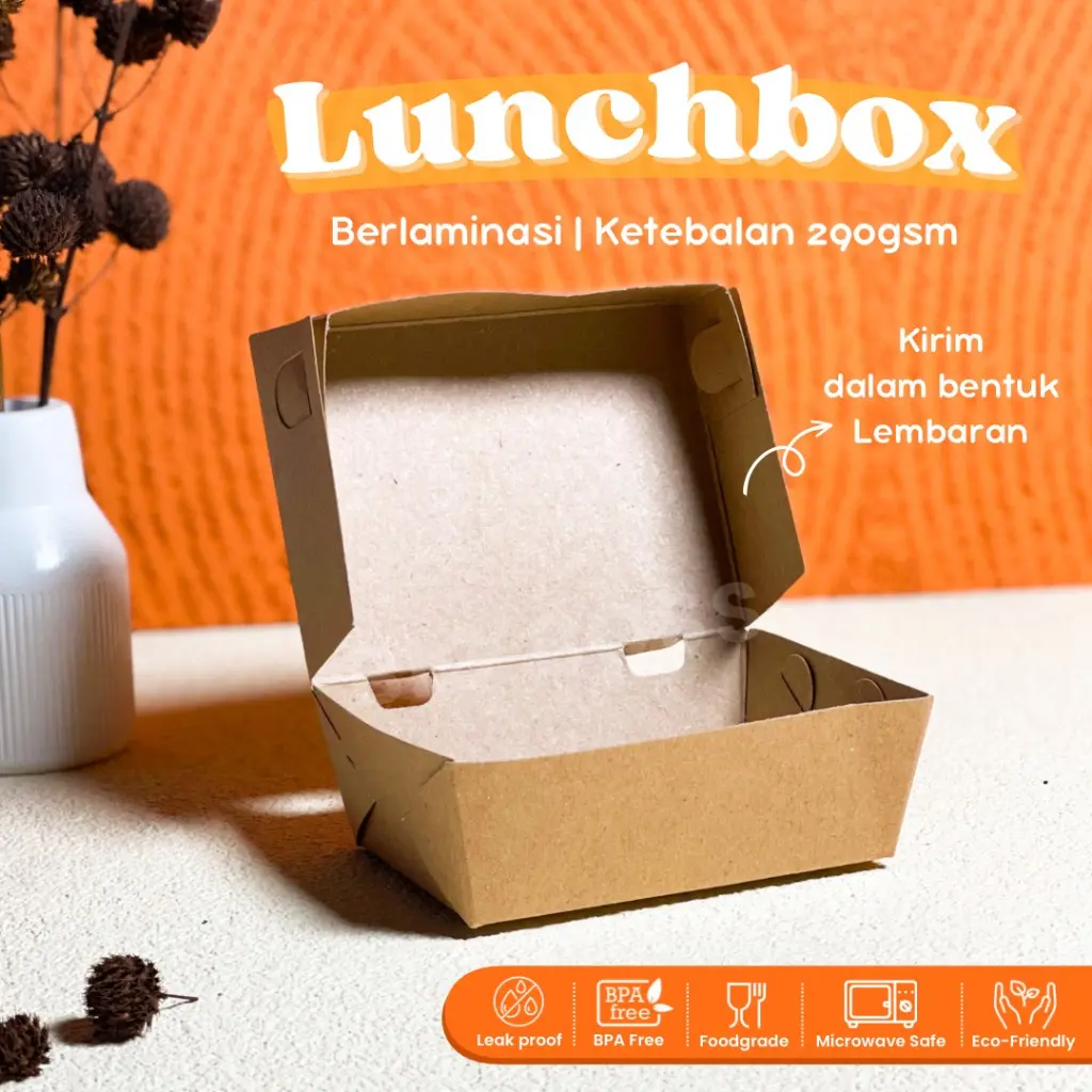Paper Lunch Box Kraft Polos Laminasi / Kotak Makan Kertas Size S M L (SISTEM SELIP)