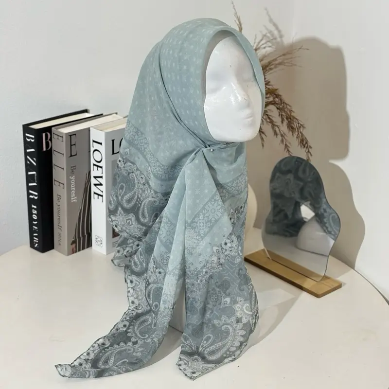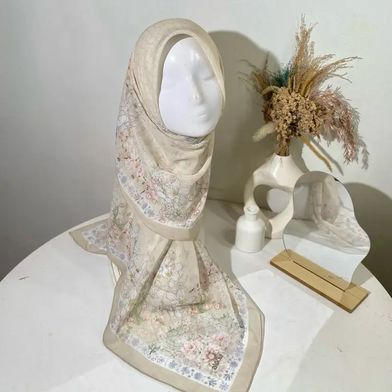 Kerudung motif dengan bahan Paris Japan ini menjadi produk eksklusif yang sangat nyaman untuk dipakai sehari-hari. Bahan Paris yang ringan dan mudah dibentuk membuat kerudung ini mudah dibentuk dan tegak di dahi. Selain itu, bahan Paris juga sangat nyaman untuk dipakai sehari-hari.