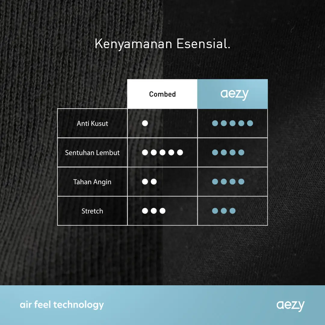 Aezy merupakan material ekslusif NO VOID MINDS yang menjanjikan peningkatan kenyamanan hidup aktif kalian untuk aktivitas sehari-hari.