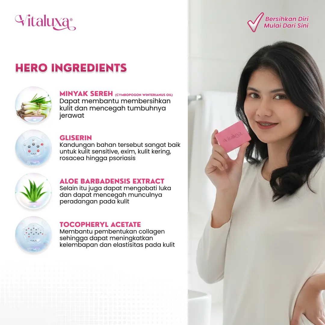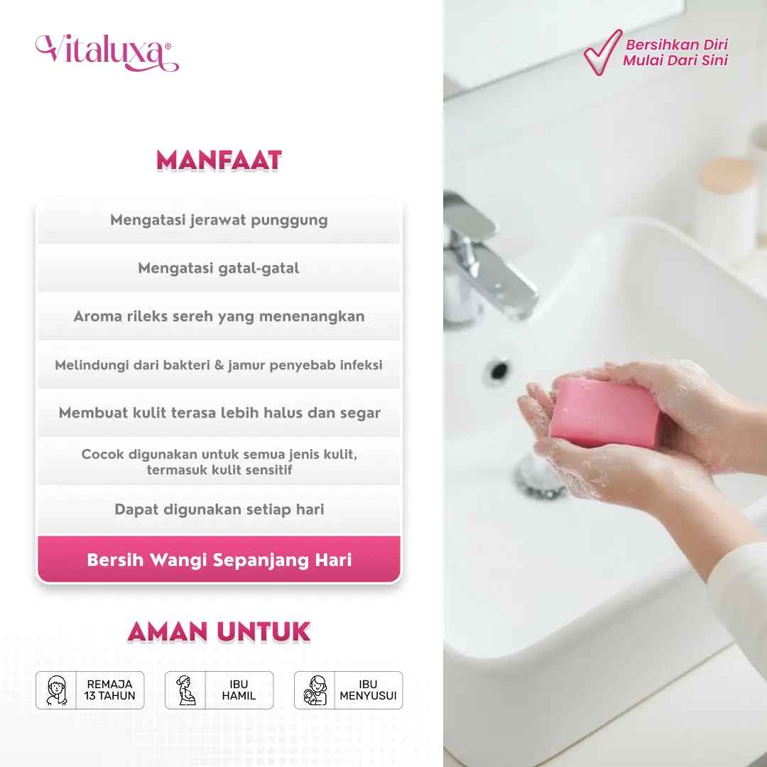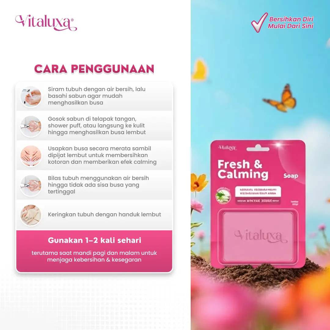 ·Sabun Vitaluxa Fresh & Calming: Sabun ini dirancang untuk memberikan kesegaran dan kenyamanan. 🌿