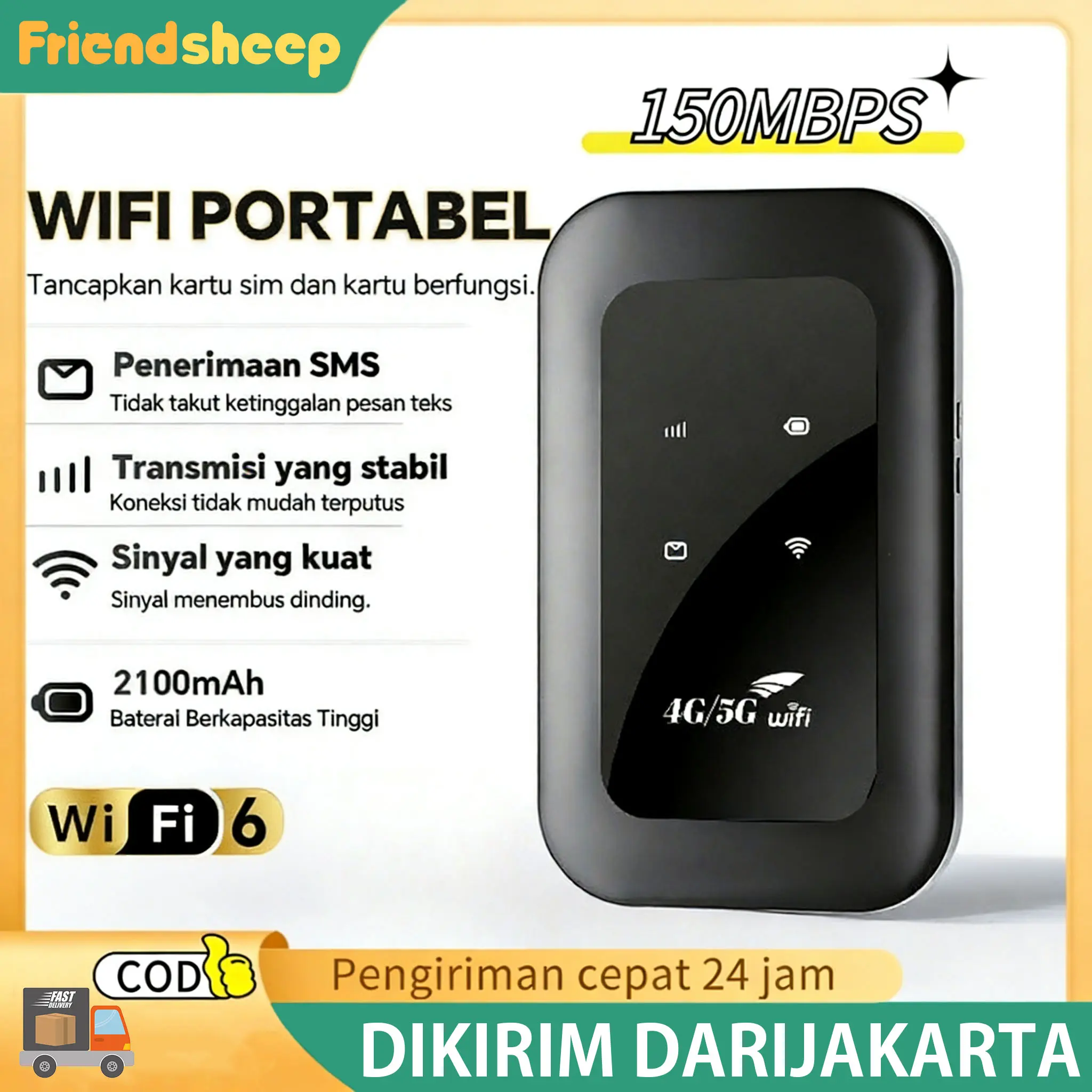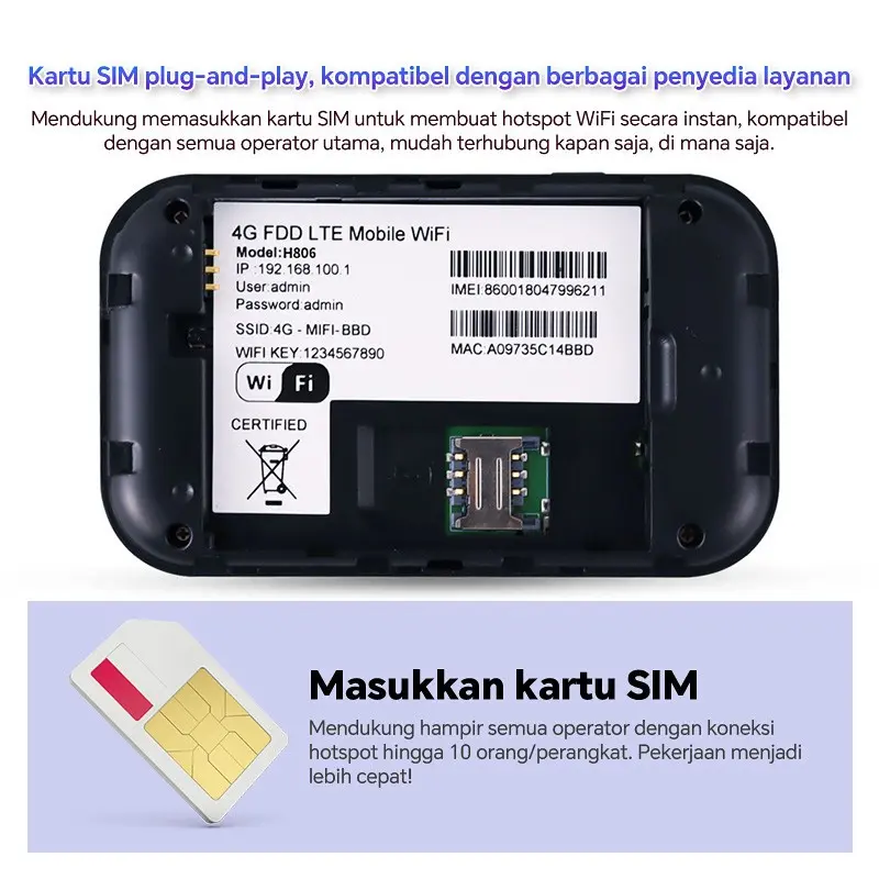 ✨ Modem MiFi Wi-Fi 4G/5G LTE dengan kartu SIM semua operator. Tidak terkunci. Dukungan penggunaan di Indonesia, Thailand, Malaysia, Filipina, dan Vietnam. Pita 4G LTE: B1/B3/B5/B40. Hubungi operator lokal untuk negara/wilayah tertentu.