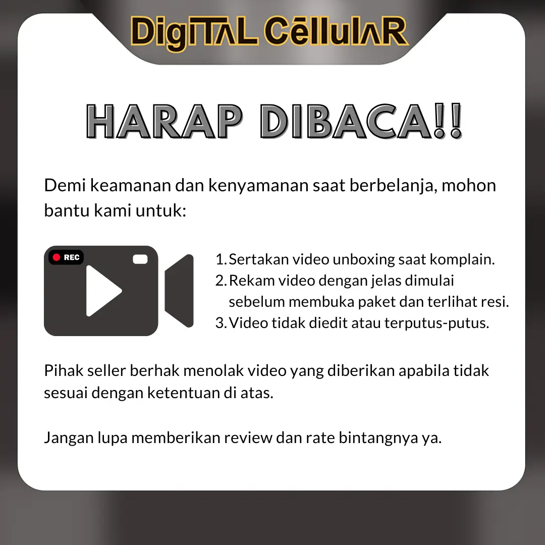 -Tanpa Adanya Video unboxing paket tidak terima komplain dalam bentuk apapun !!!