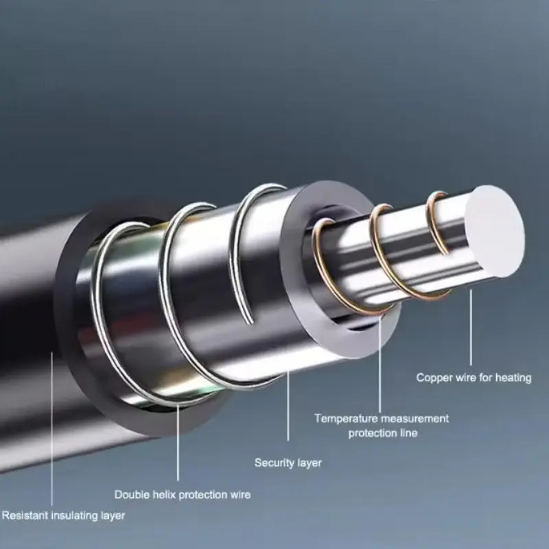 > Tidak bocor listrik saat terkena air, tahan terhadap tekukan, dan memiliki 5 lapisan perlindungan isolasi tinggi.