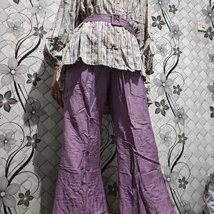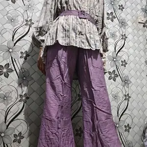 Setelan celana. Warna ungu. Bahannya halus lembut, adem dan nyaman saat dipakai. Co 4 untuk dipakai bareng sm adik dan kakak. Packing rapi dan cepat banget sampainya. Terima kasih.