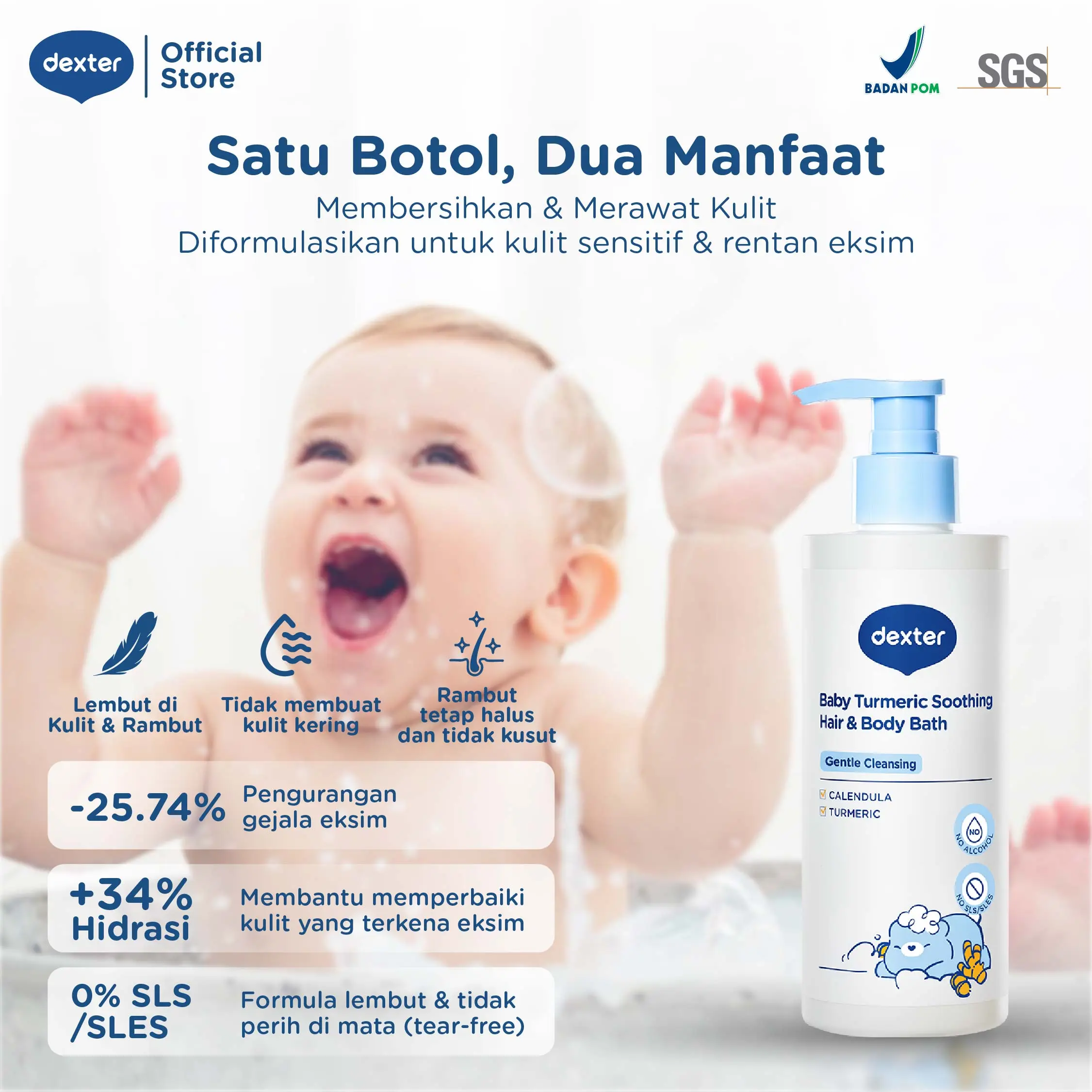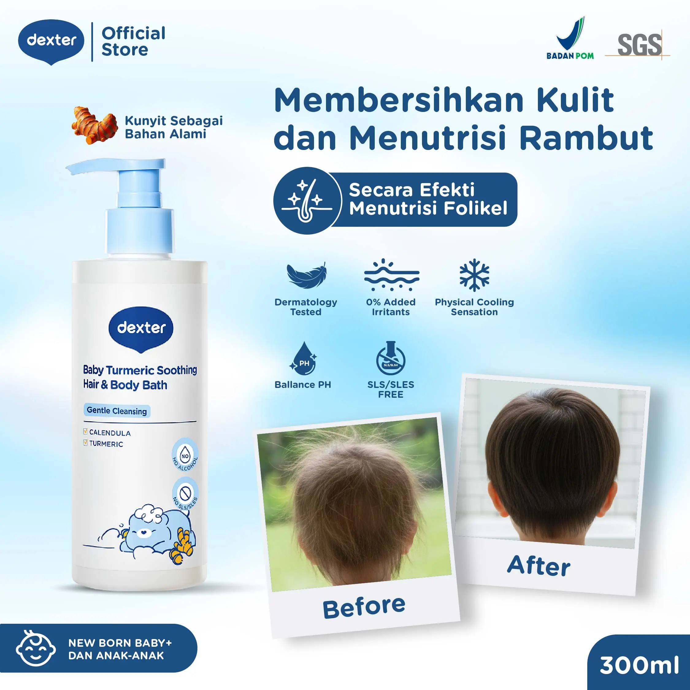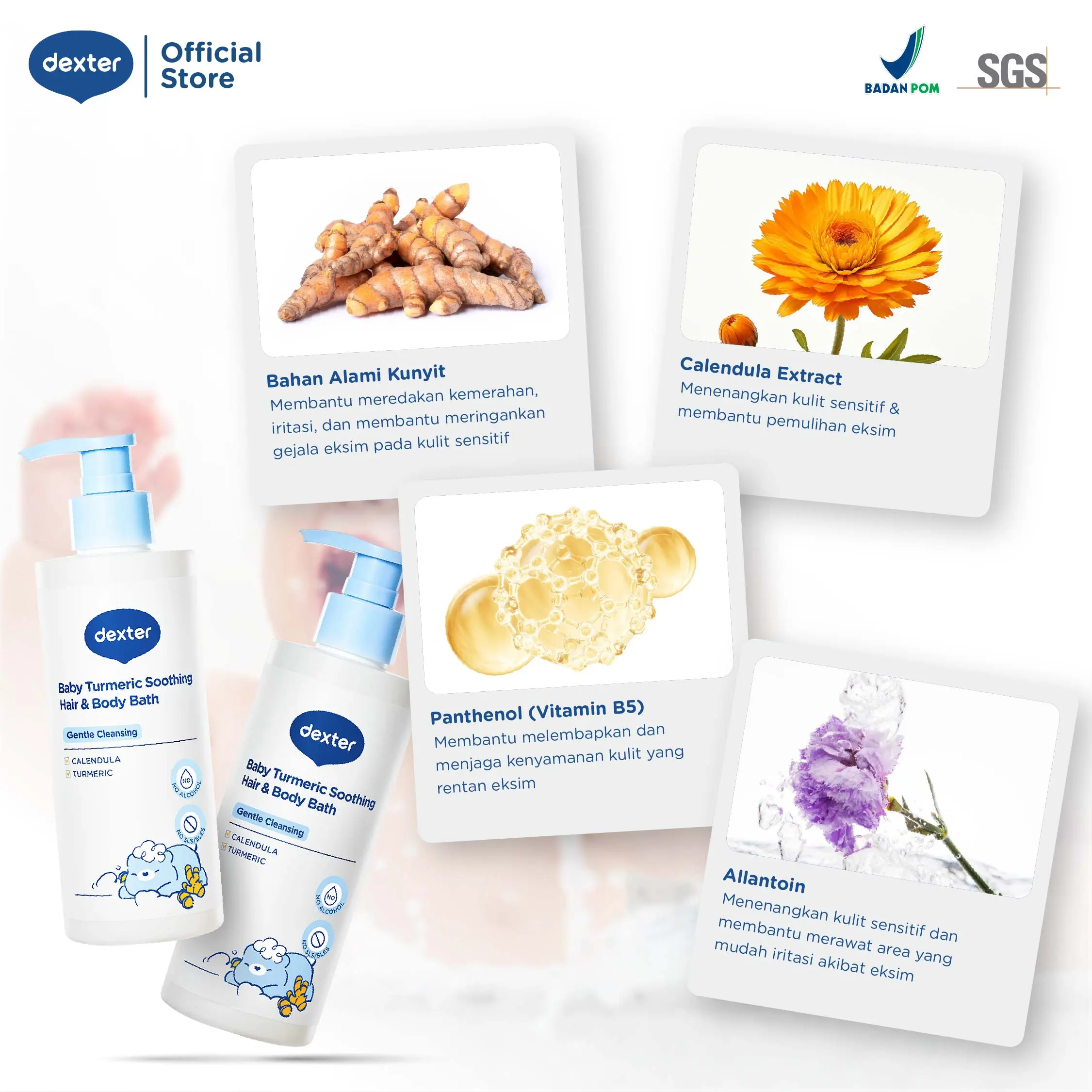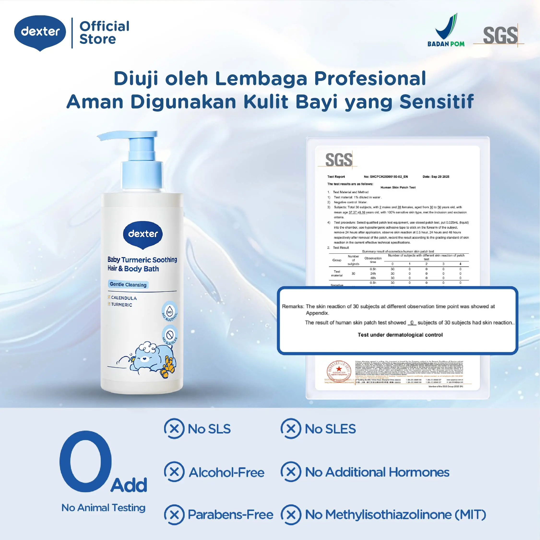 DEXTER Baby Turmeric Soothing Hair & Body Bath 300 ml | Dermatology Tested Cocok untuk Kulit Sensitif | BPOM NA11250700235
