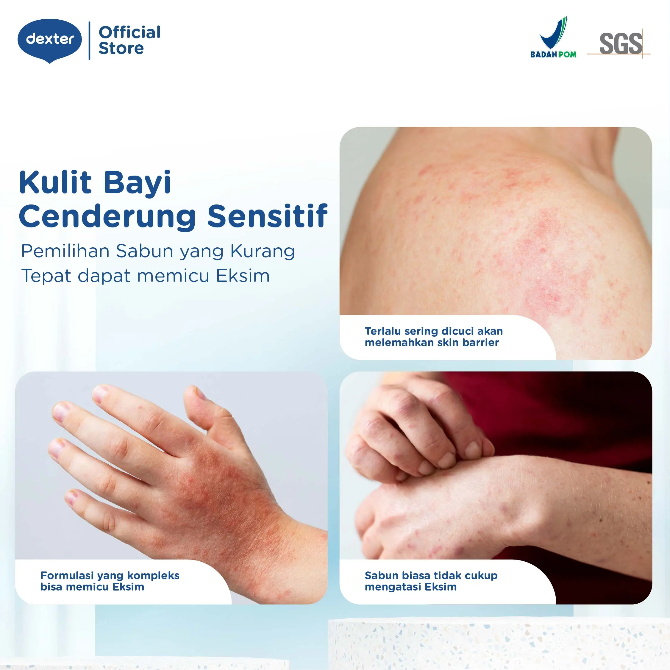 Formulanya bebas SLS/SLES, sehingga menghindari efek stripping yang biasa muncul pada sabun atau shampoo biasa. Karena skin barrier bayi jauh lebih tipis dan belum matang, pembersihan lembut sangat penting untuk menjaga kelembapan alami dan mencegah iritasi. Dexter memastikan setiap mandi memberikan rasa bersih tanpa membuat kulit terasa kering atau “ketarik.”