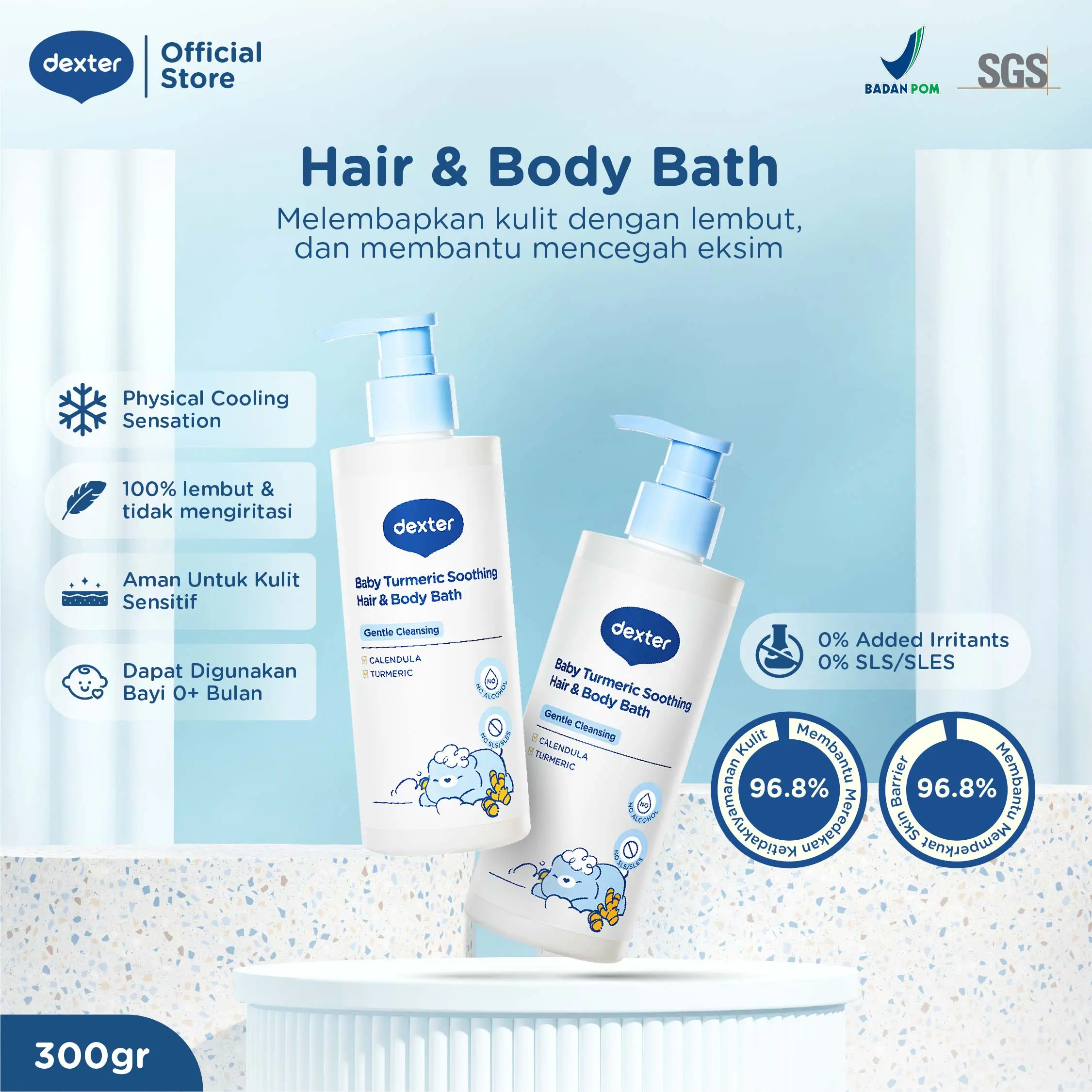 Dexter Baby Turmeric Soothing Hair & Body Bath adalah pembersih 2-in-1 premium yang dirancang secara ilmiah untuk menjawab kebutuhan bayi dengan kulit sensitif, eczema-prone, serta rambut yang mudah kusut terutama di iklim panas dan lembap seperti Asia Tenggara.