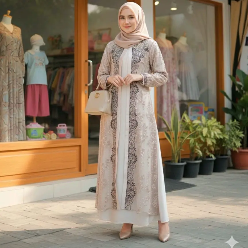 Model bagus cm jahitan kurang rapi.. Payet dijahit dg benang warna lain jd kelihatan mencolok.. Tepi kain ada benang yg keluar... Mohn maaf🙏