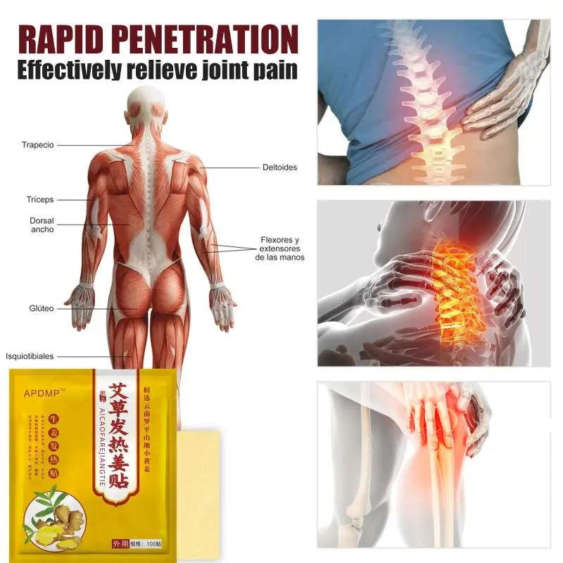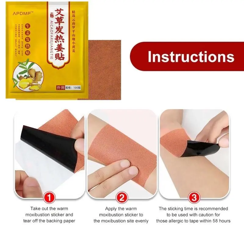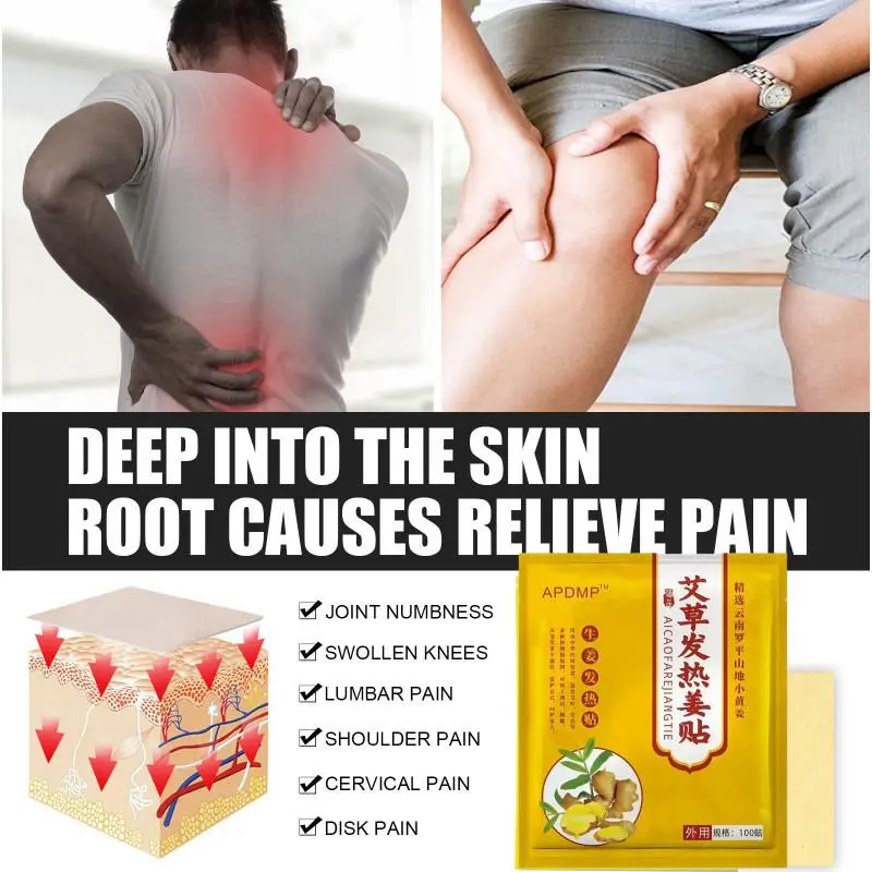 100pcs Patches Ginger Herbal untuk Promotes Sirkulasi Darah dan Mengurangi Nyeri Lutut Leher dan Punggung