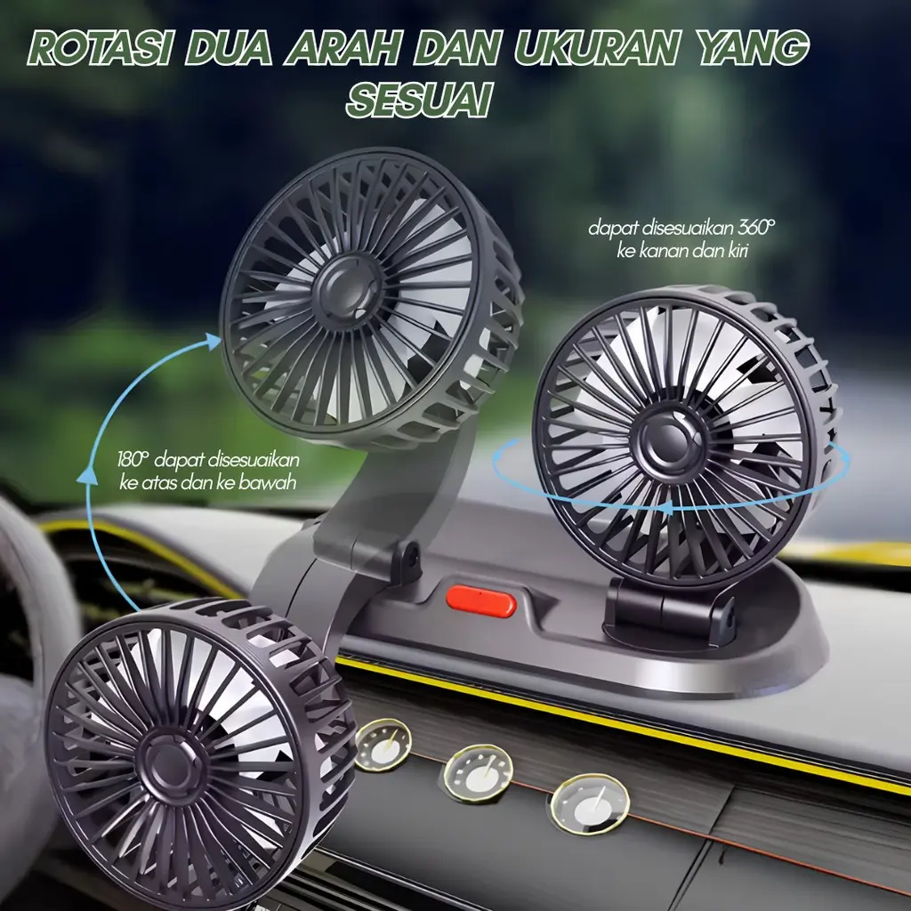 ✨ Kipas Angin Mobil Double-Headed Fan – Solusi ideal untuk pendingin kabin mobil Anda. Dengan dua kepala kipas yang bisa berputar 360°, kipas ini menyebarkan udara segar secara merata. Cocok sebagai pengganti atau tambahan pendingin AC.
