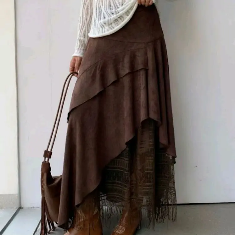 Detail Produk : Bahan : Kain Velour Desain : dengan cuttingan Asymetric, serta jahitan Berlayer, terdapat detail kain brukat , dilengkapi dengan kain furing Warna : Brown, dan Black Motif : Polos Benefit : Model Kekinian, nyaman dipakai sepanjang hari, cocok untuk acara apapun. Jenis : Rok khusus wanita