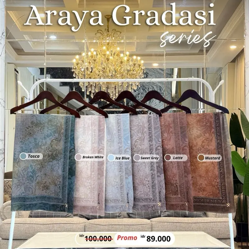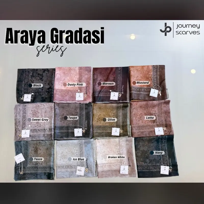 ARAYA SERIES TERBARU adalah hijab segiempat wanita muslimah dengan motif. Produk asli dari JOURNEY SCARVES ORIGINAL. Pilihan tepat untuk penampilan Anda. π