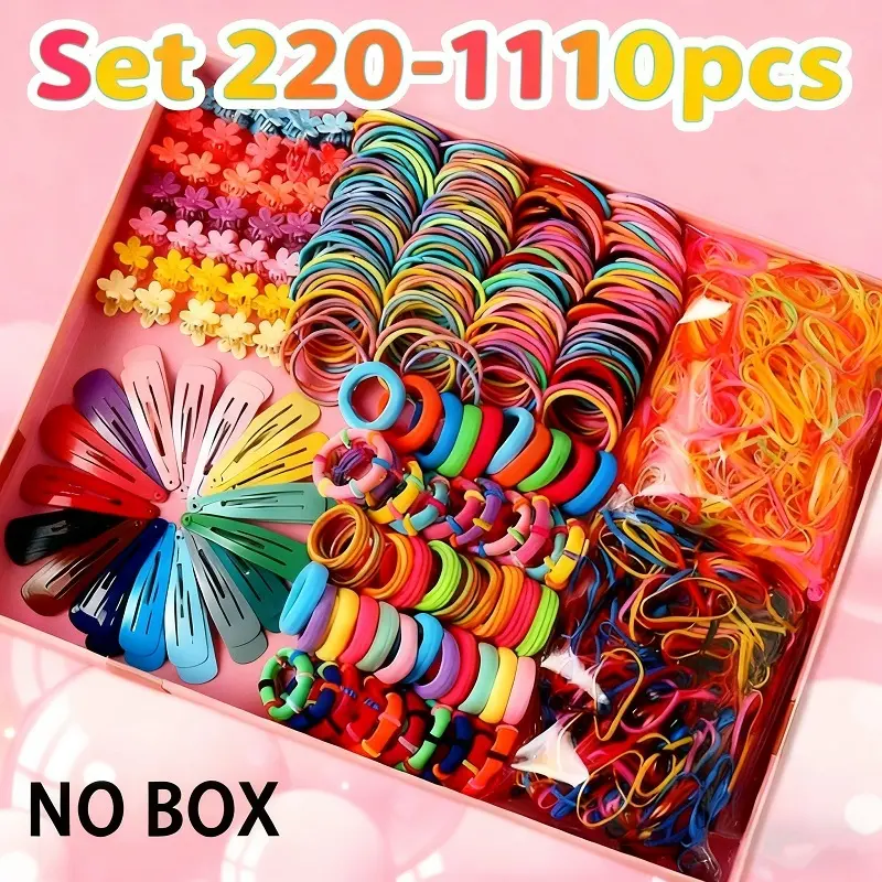 Paket Aksesori Rambut Anak 220-1110pcs Set Lengkap Jepit Rambut Tali Warna-warni untuk Anak Perempuan