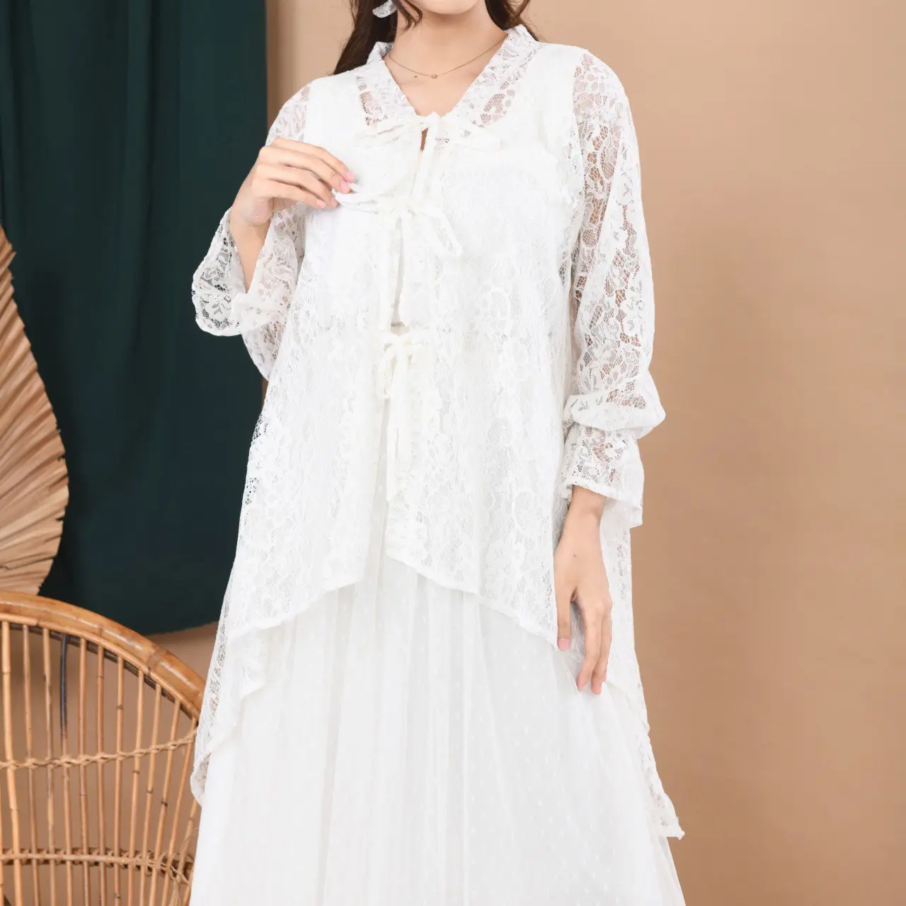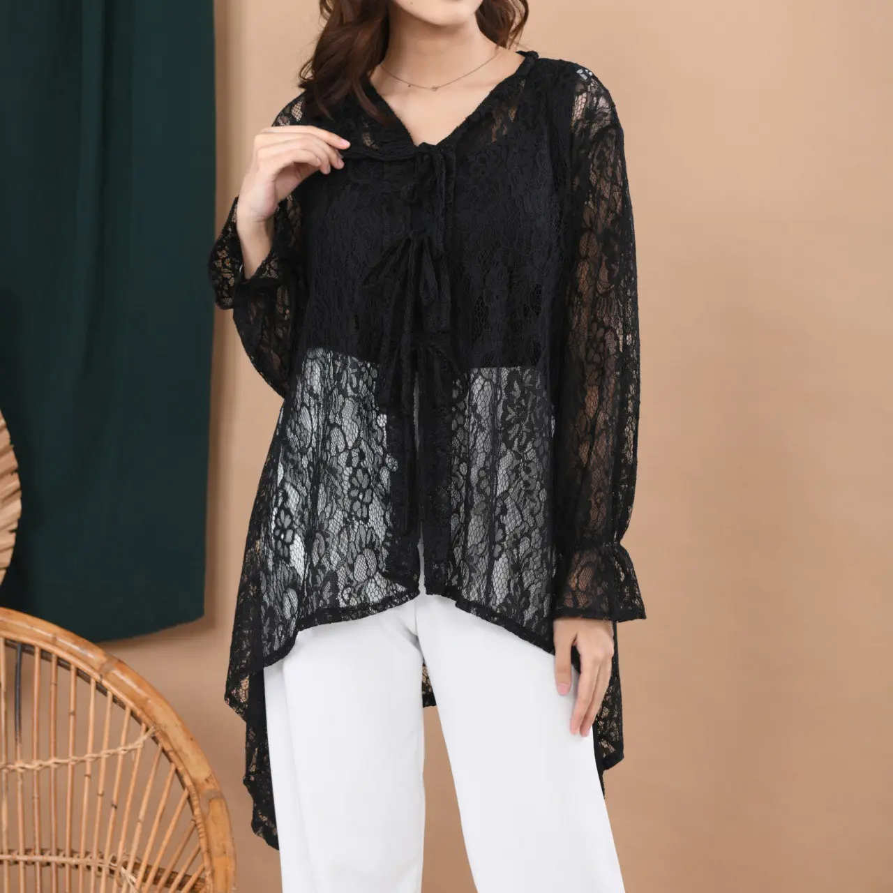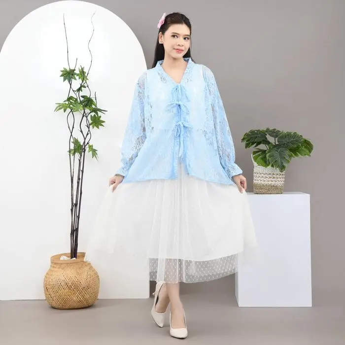 Buat kamu yang mencari ootd untuk kondangan atau acara formal, rekomendasi outer ala Korean style ini cocok. Cocok dipadukan dengan long sleeve atau inner andalanmu. Detail motif brokat yang cantik menambah kesan manis. Detail tali di bagian depan memudahkan pemakaian. Yuk check out sekarang!