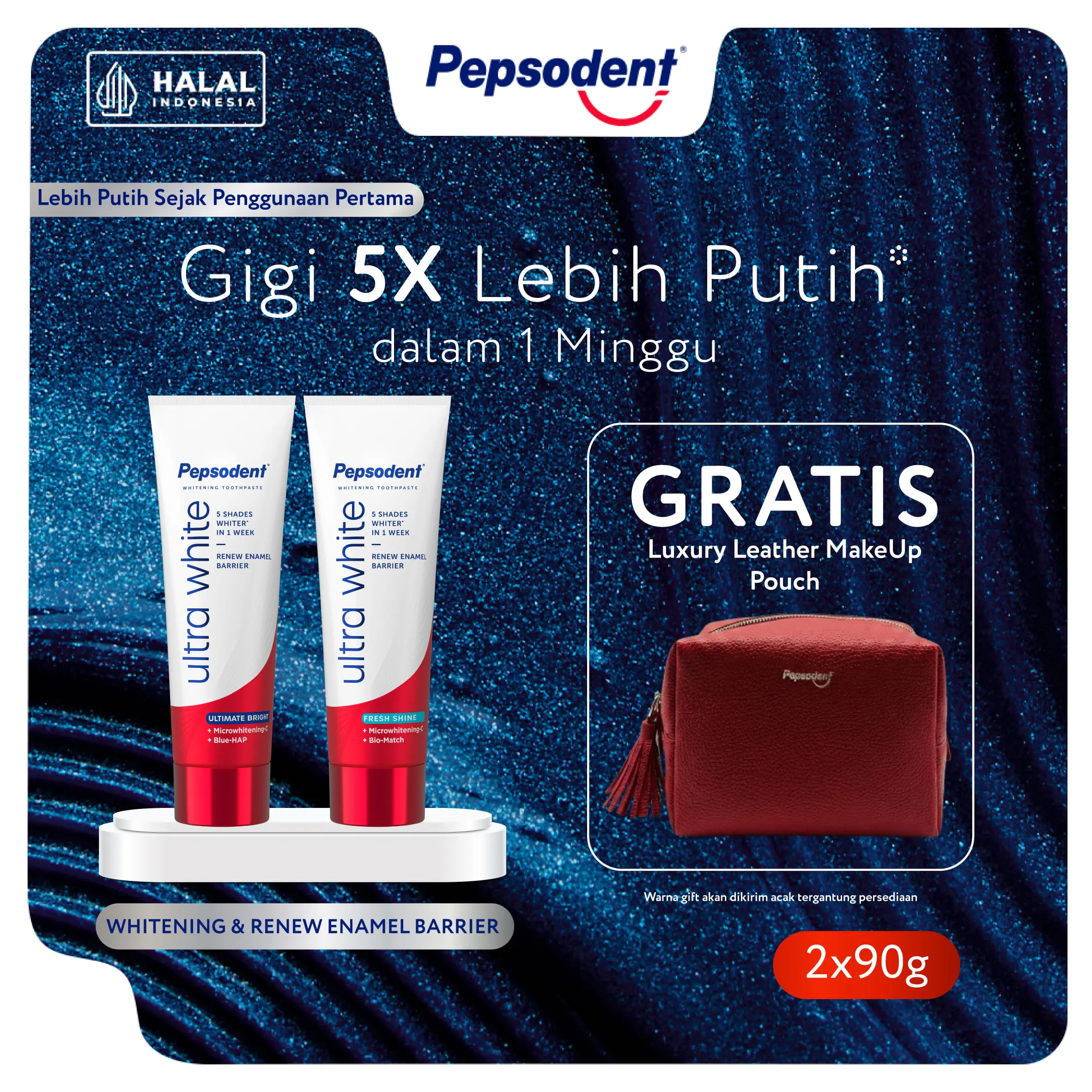 Buy 1 Pepsodent Ultra White Ultimate Bright Pasta Gigi Pemutih 90g & 1 Pepsodent Ultra White Fresh Shine Pasta Gigi Pemutih 90g FREE Luxury Leather Pouch