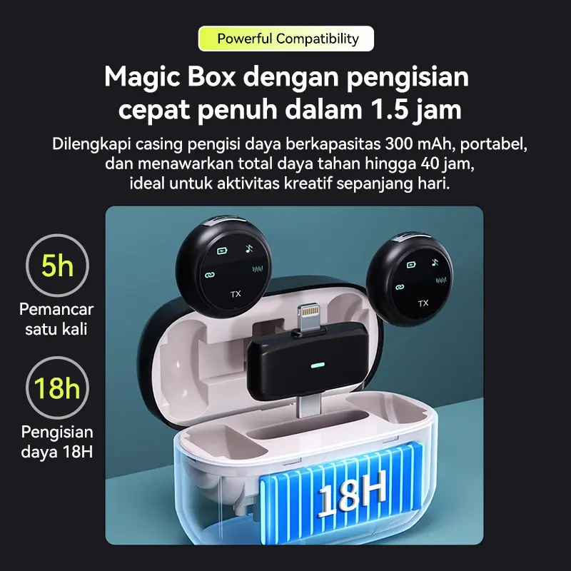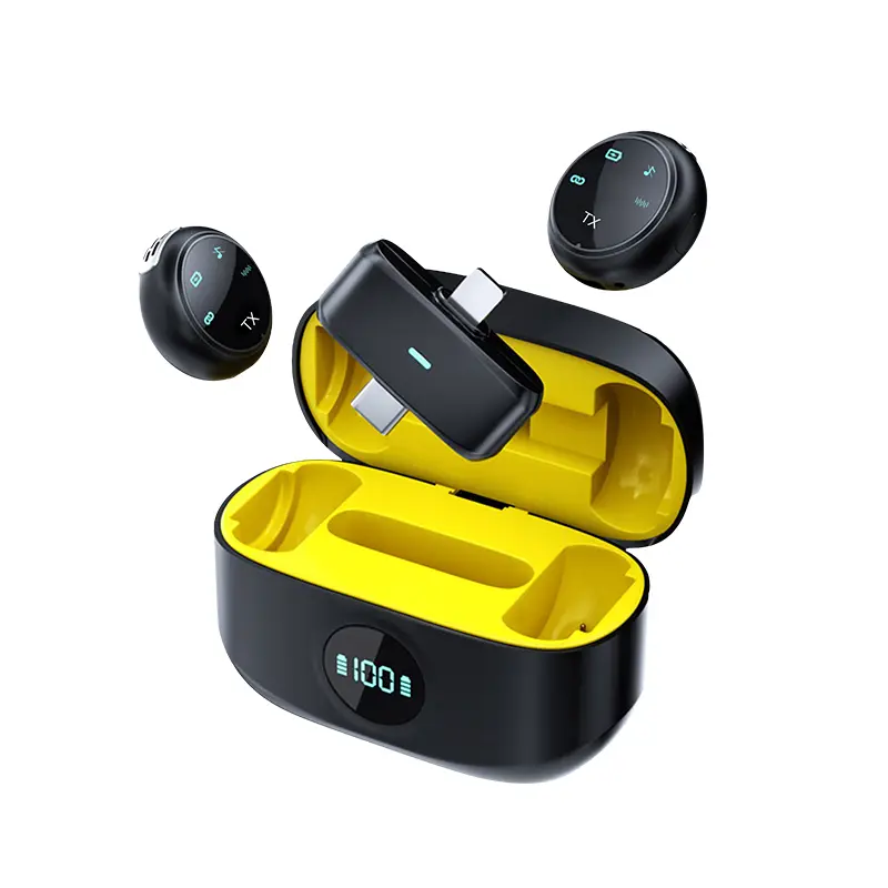 5. Mikrofon Nirkabel UR37, mikrofon lavalier nirkabel dengan wadah pengisi daya, kompatibel dengan ponsel, tablet, dan komputer.