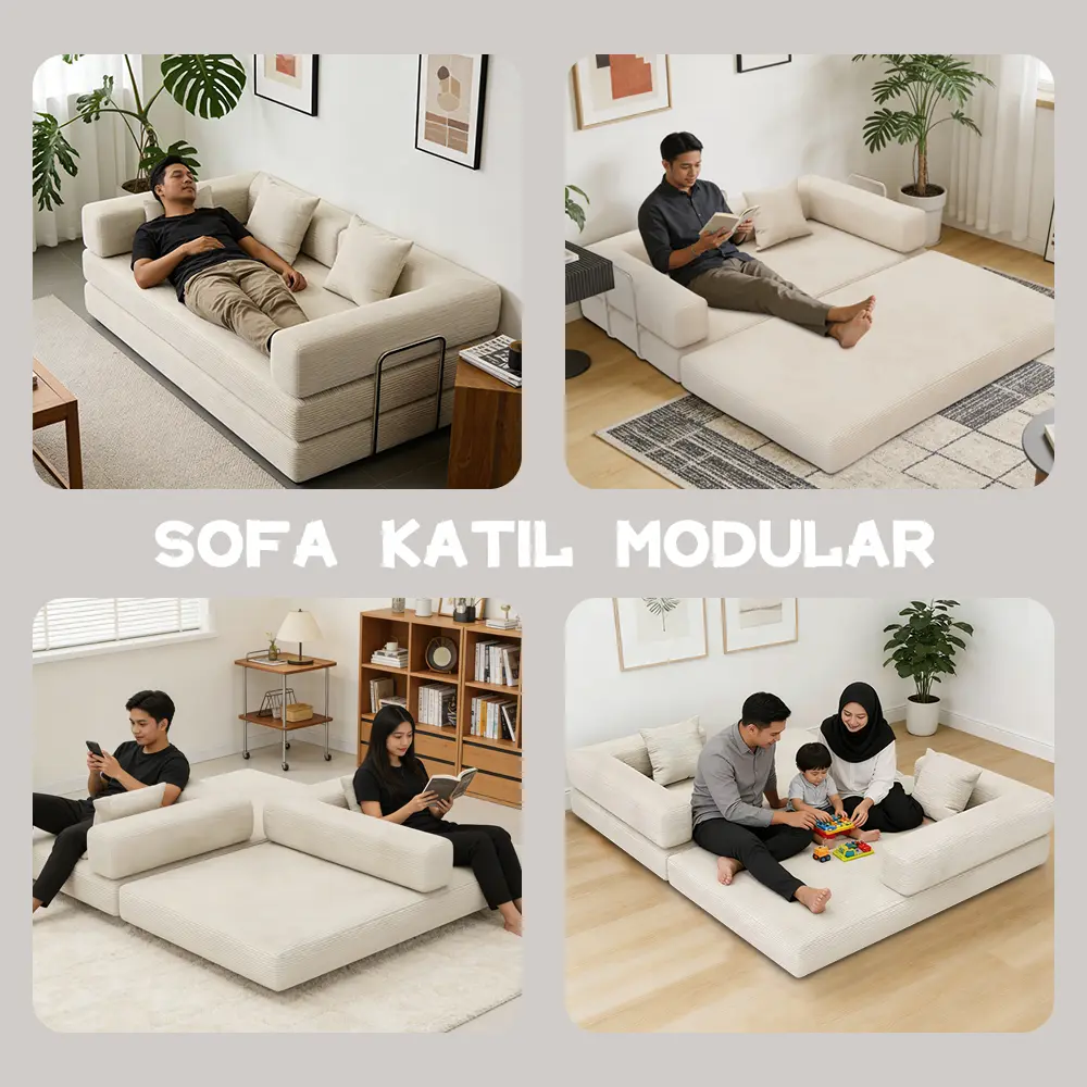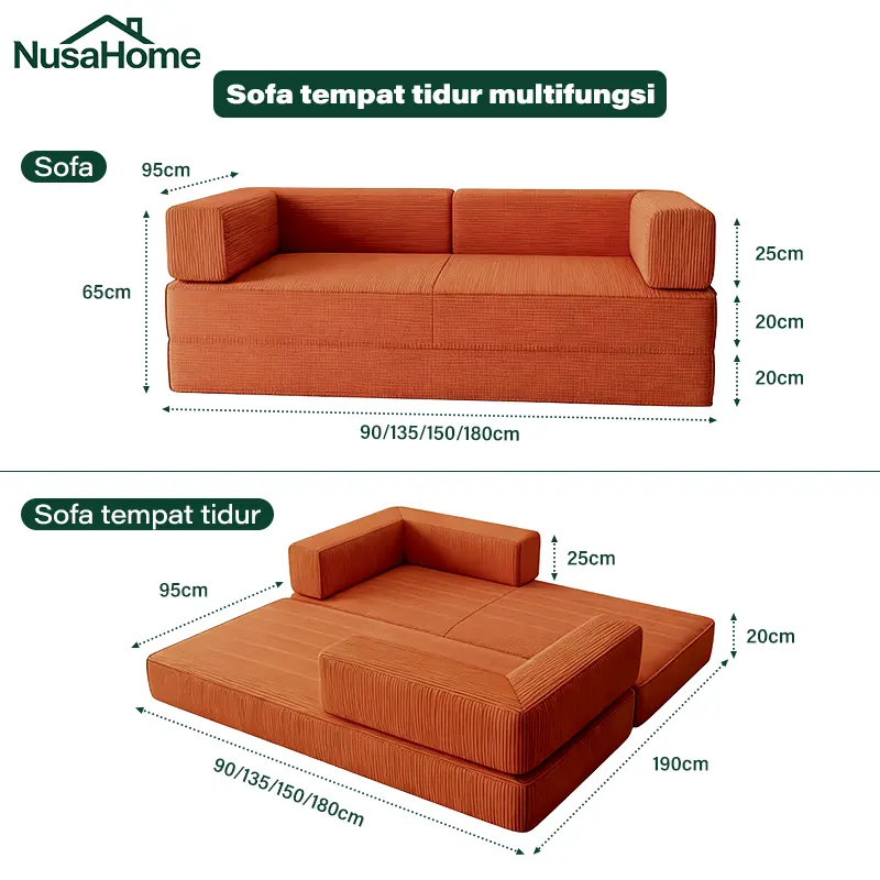 Nusahome Sofa Bed Minimalis Ruang Tamu Serbaguna Nyaman Empuk Bahan Vacuum Anti Bau, Rangka Kuat & Sandaran Bisa Dilepas Sofa Bed Lembut