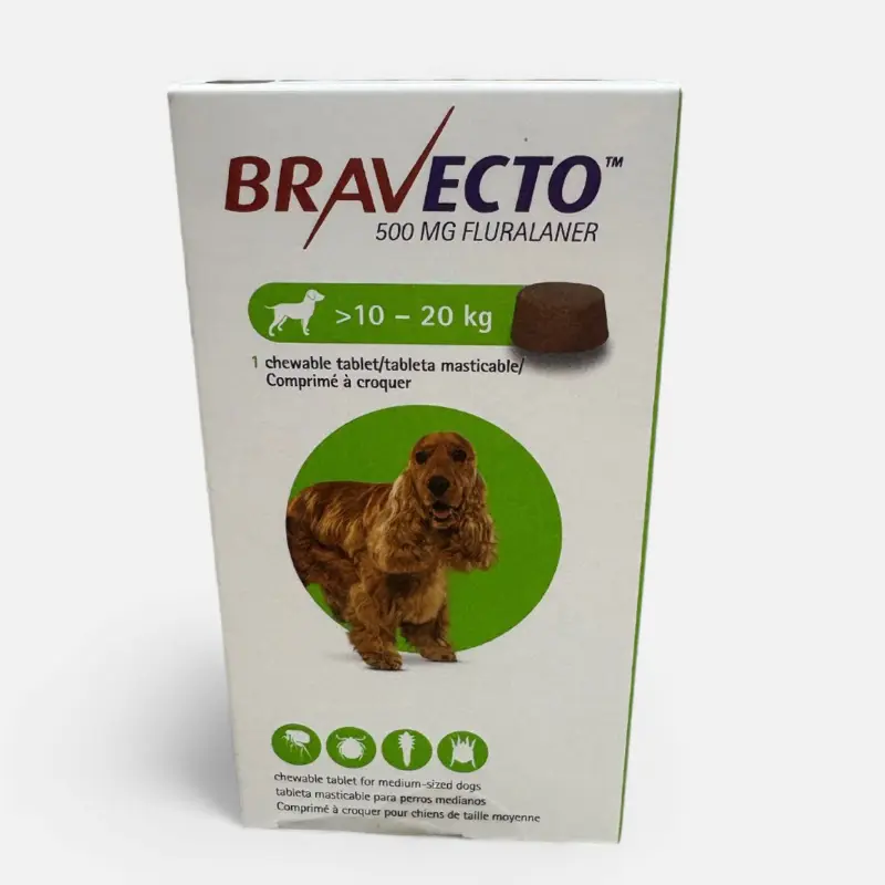 BRAVECTO 500 MG Fluralaner Obat Kutu Anjing 10-20 kg Chewable Tablet 90 Hari