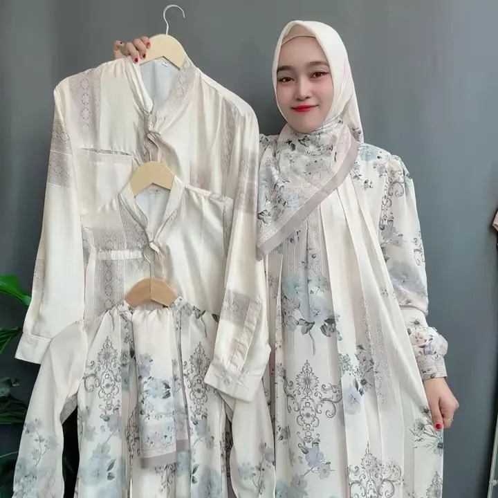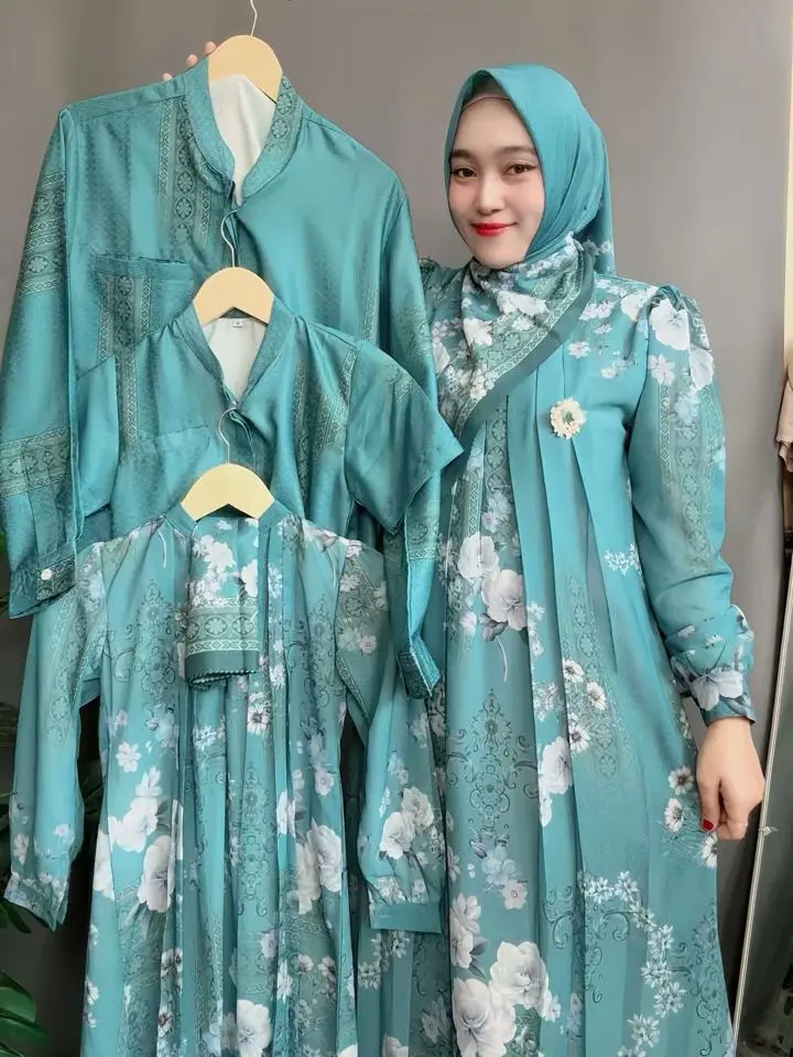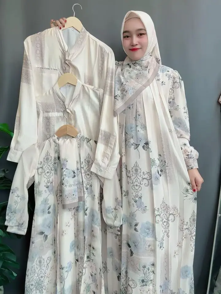 ✨ Khalifah Sarimbit - Setelan keluarga yang cocok untuk Lebaran. Set ini termasuk gamis dan koko Muslim. Desainnya printing premium, memberikan tampilan yang elegan. Cocok untuk pasangan yang ingin tampil serasi. 🌟