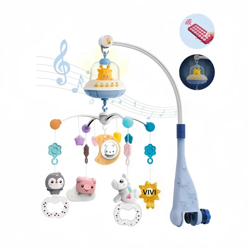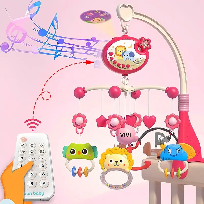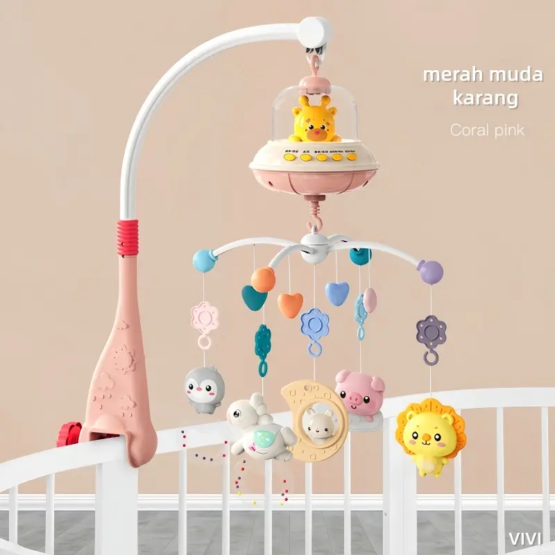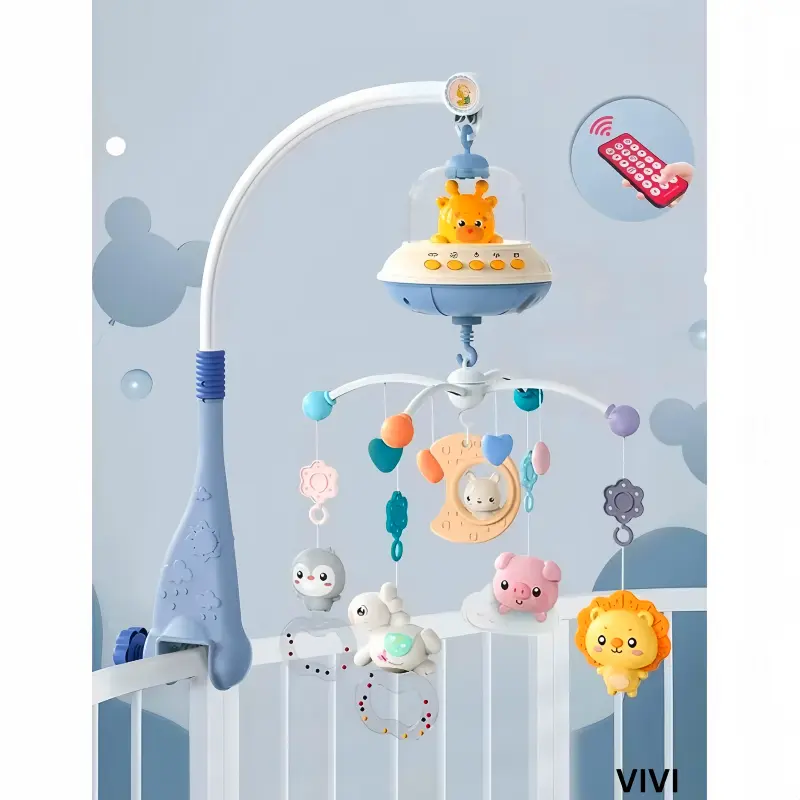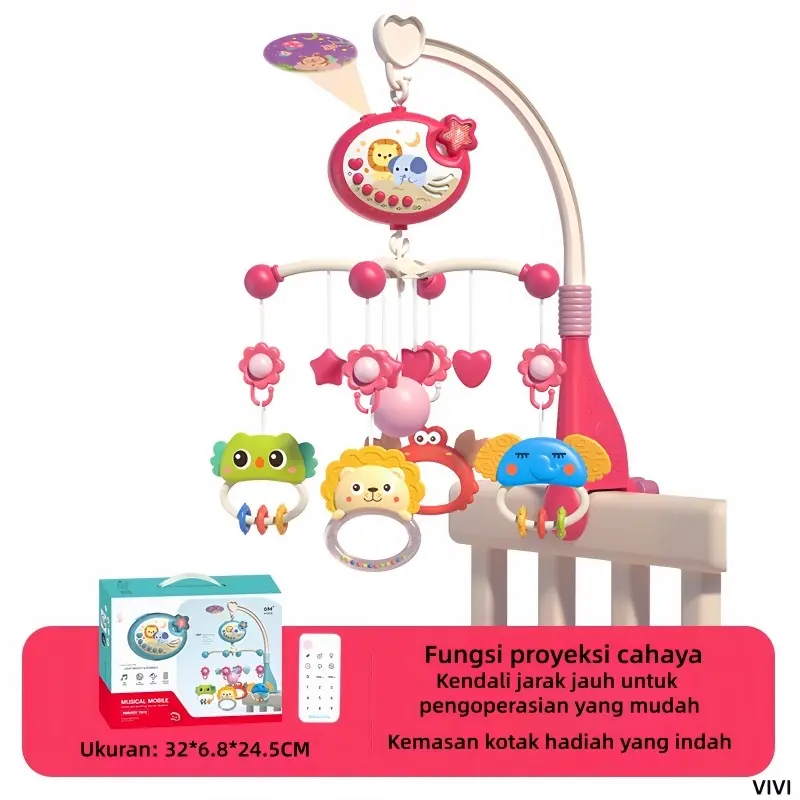 VIVI Kerincingan Tetap Lonceng Tempat Tidur Bayi Ponsel Musik Putar 360 Derajat dengan Proyeksi Musik Ringan Cocok untuk Mainan Bayi Baru Lahir 0-6 Bulan