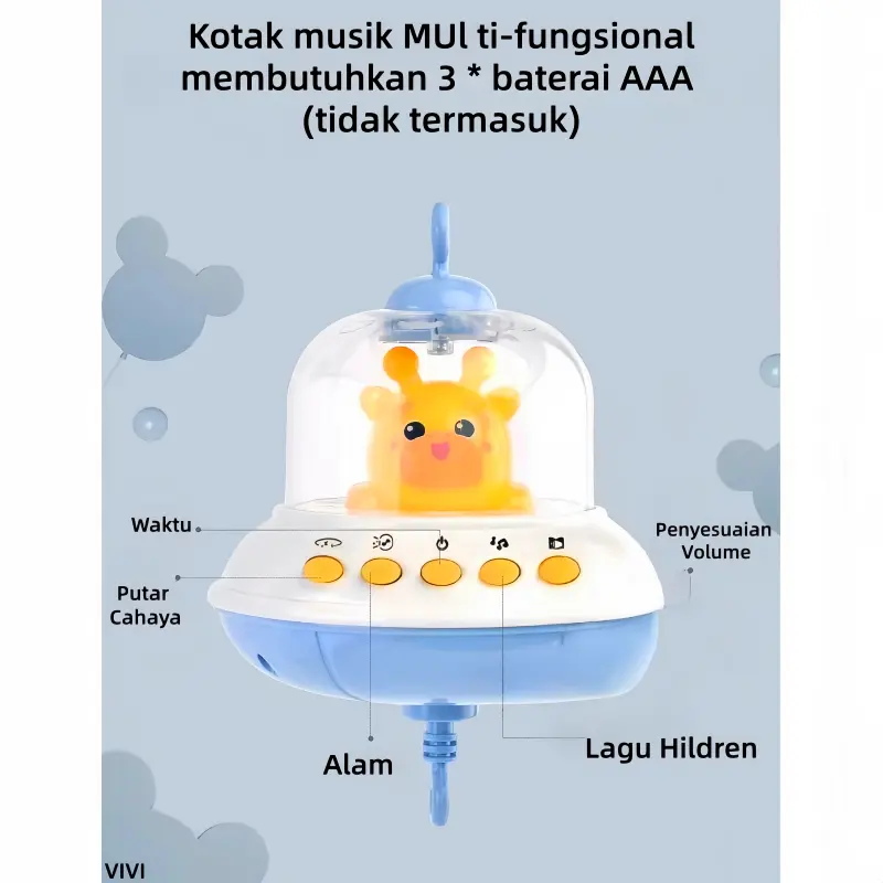 5. VIVI Kerincingan Tetap Lonceng Tempat Tidur Bayi Ponsel Musik Putar 360 Derajat dengan Proyeksi Musik Ringan Cocok untuk Mainan Bayi Baru Lahir 0-6 Bulan