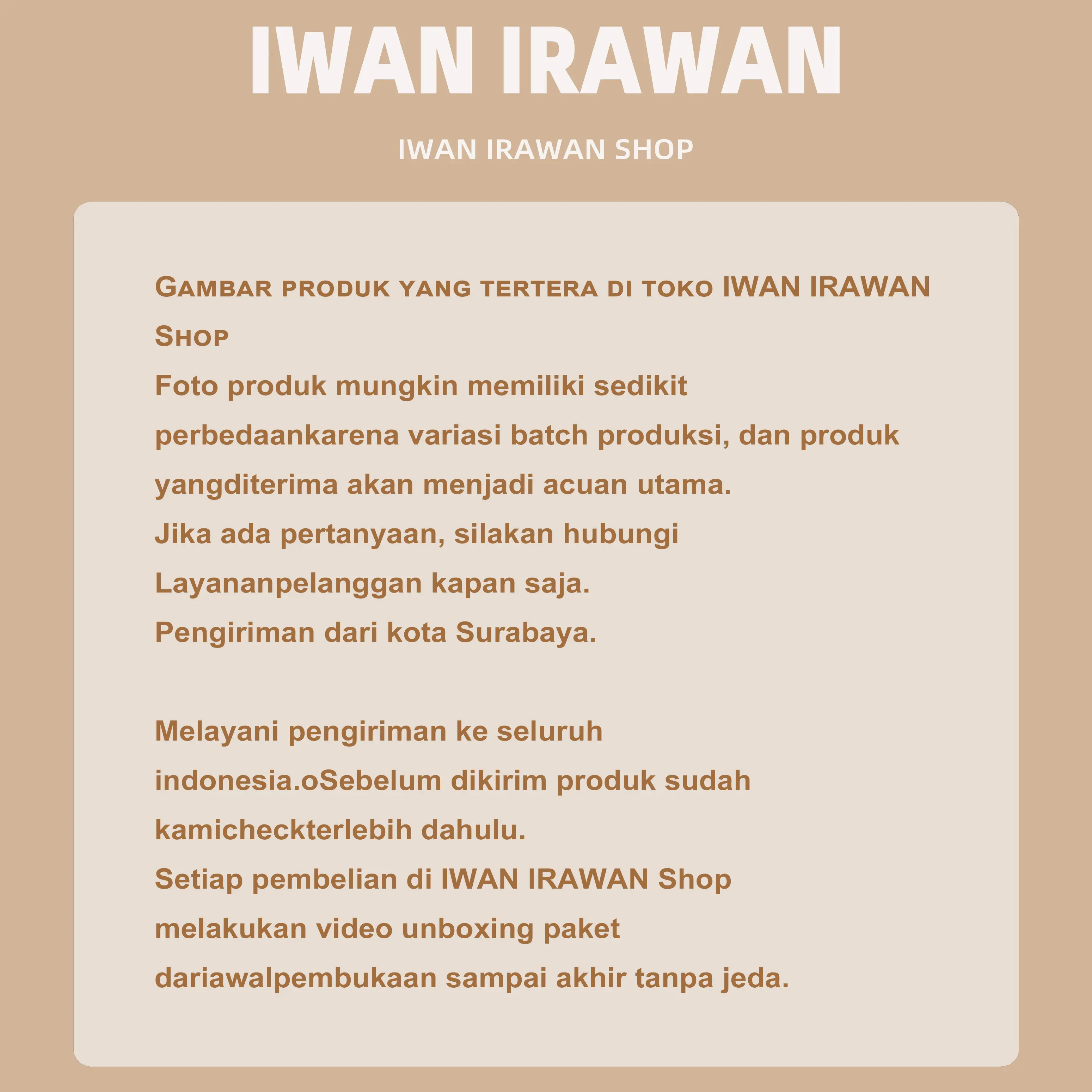 - Klaim produk Salah/Rusak WAJIB melakukan Video Unboxing full paket dengan jelas tanpa terpotong