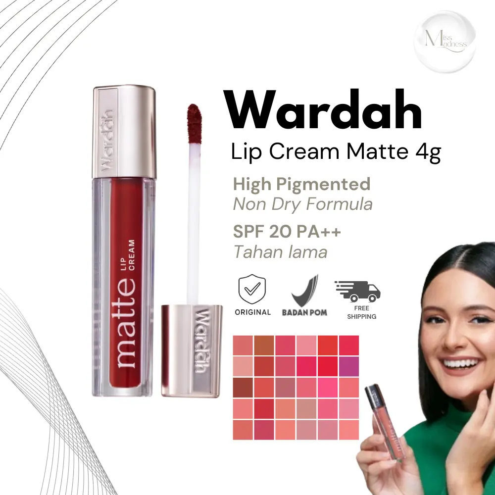 Wardah Exclusive Matte Lip Cream merupakan Inovasi Lushlip Liquid dengan tekstur cream lembut untuk aplikasi sekali oles dengan warna merata. Lip Cream dengan kandungan Colorbinding Pigments di dalamnya memberikan matte finish intens yang tahan lama. Hadir dalam 19 pilihan warna yang mewah sempurna dapat bertahan lama di bibir sepanjang hari.