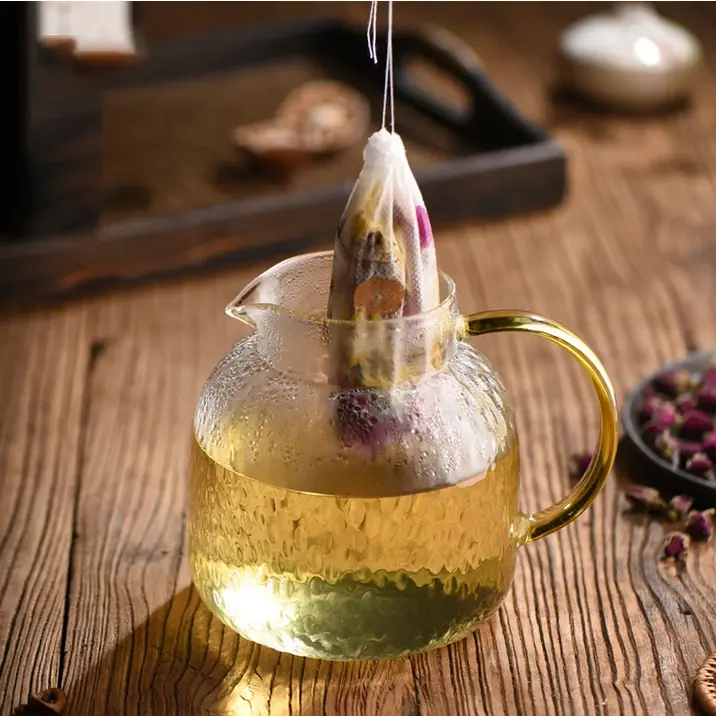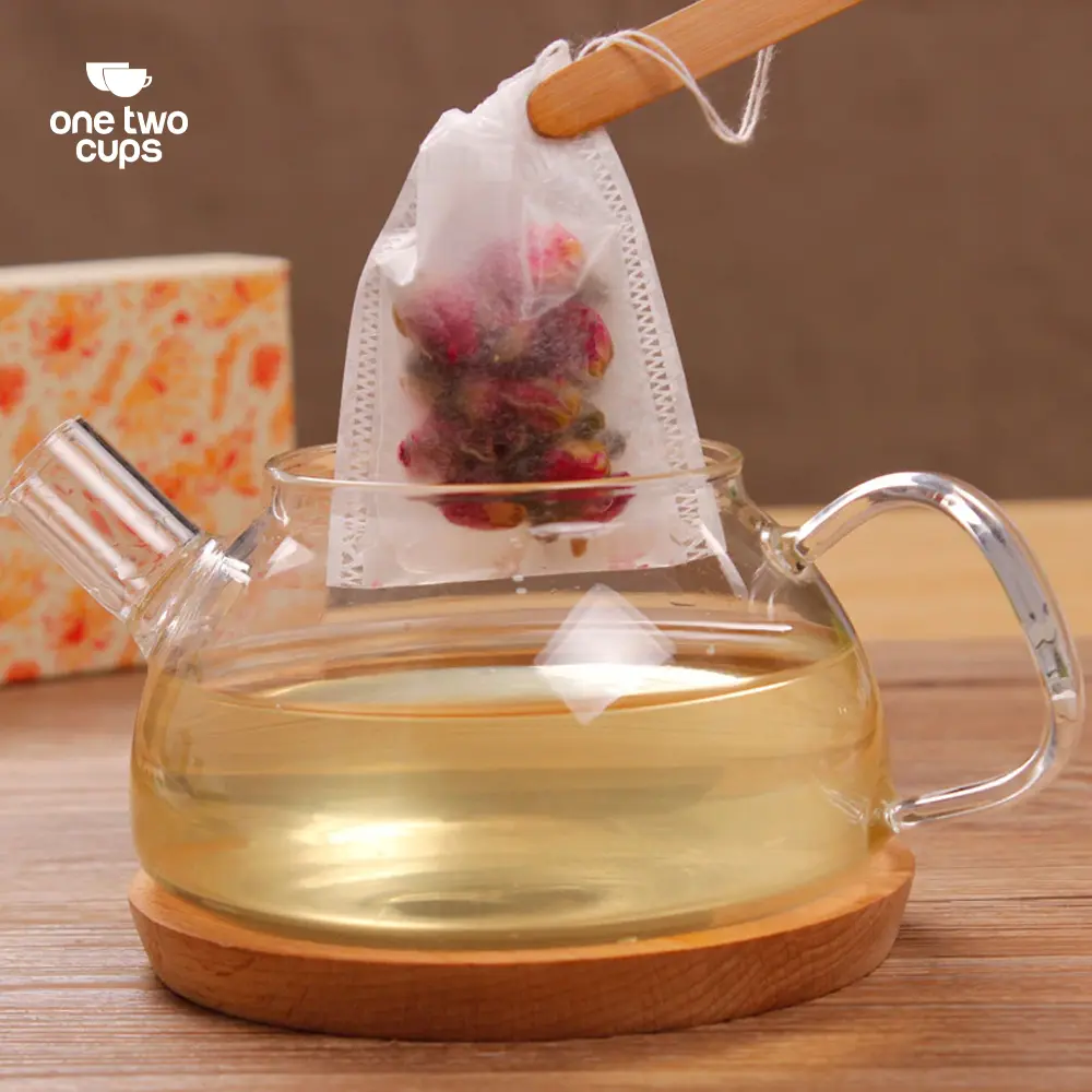 Bahan kain non-woven yang terbuat dari serat sintetis atau serat alami kuat dan tahan air sehingga sangat cocok digunakan sebagai kantong teh. Bahan non-woven juga memiliki standar food grade yang aman digunakan untuk minuman.