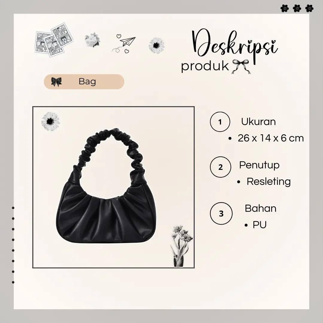 • Selisih ukuran 1–3 cm wajar ya, karena dijahit manual.