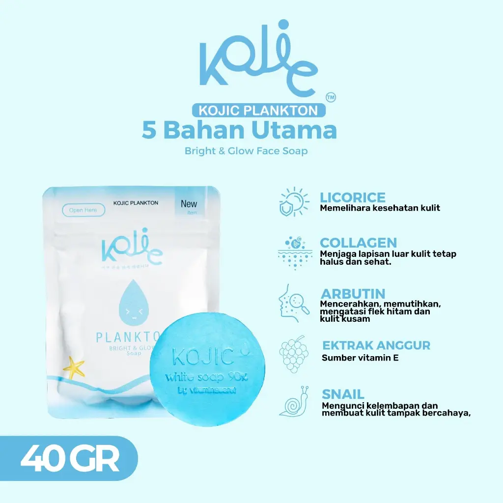 5. (FORMULA BARU) KOJIC PLANKTON BRIGHT & GLOW | 40gr FACIAL SOAP dan BODY SOAP