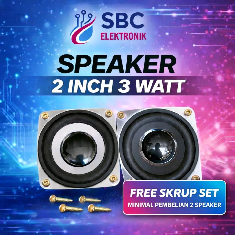 SBC Elektronik Speaker 2 Inch 3 Watt Full Range Hitam & Hitam Putih dengan Kuping Magnet Sedang 4 Ohm Free Skrup Set