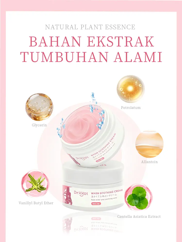 Dr.KKot Warm Soothing Cream adalah solusi untuk permasalahan menstruasi. produk ini menawarkan manfaat luar biasa untuk merawat tubuh Anda.