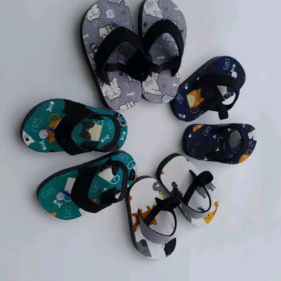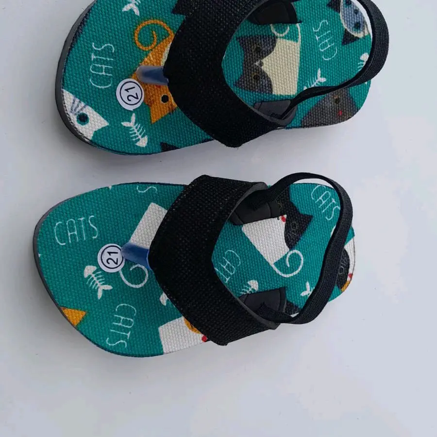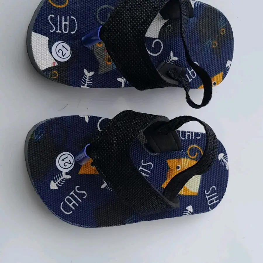 Sandal anak laki-laki dengan motif kucing. Rekomendasi usia 1-2 tahun