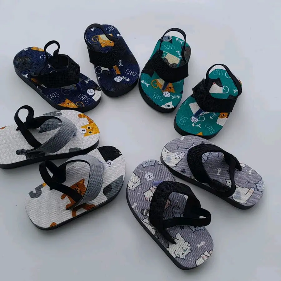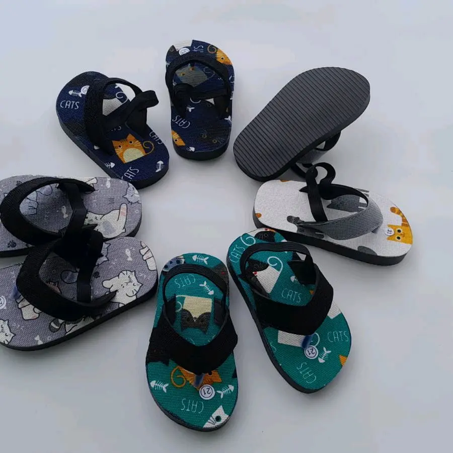 Sandal jepit anak laki laki tali belakang Motif meow Fashion