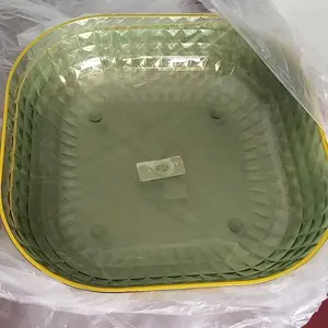 3-6 Pcs (BESAR) Daiya Piring Saji Kue Plastik 20 CMS Segi empat Crystal Anti pecah / piring prasmanan / piring saji