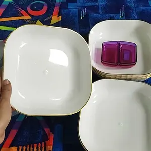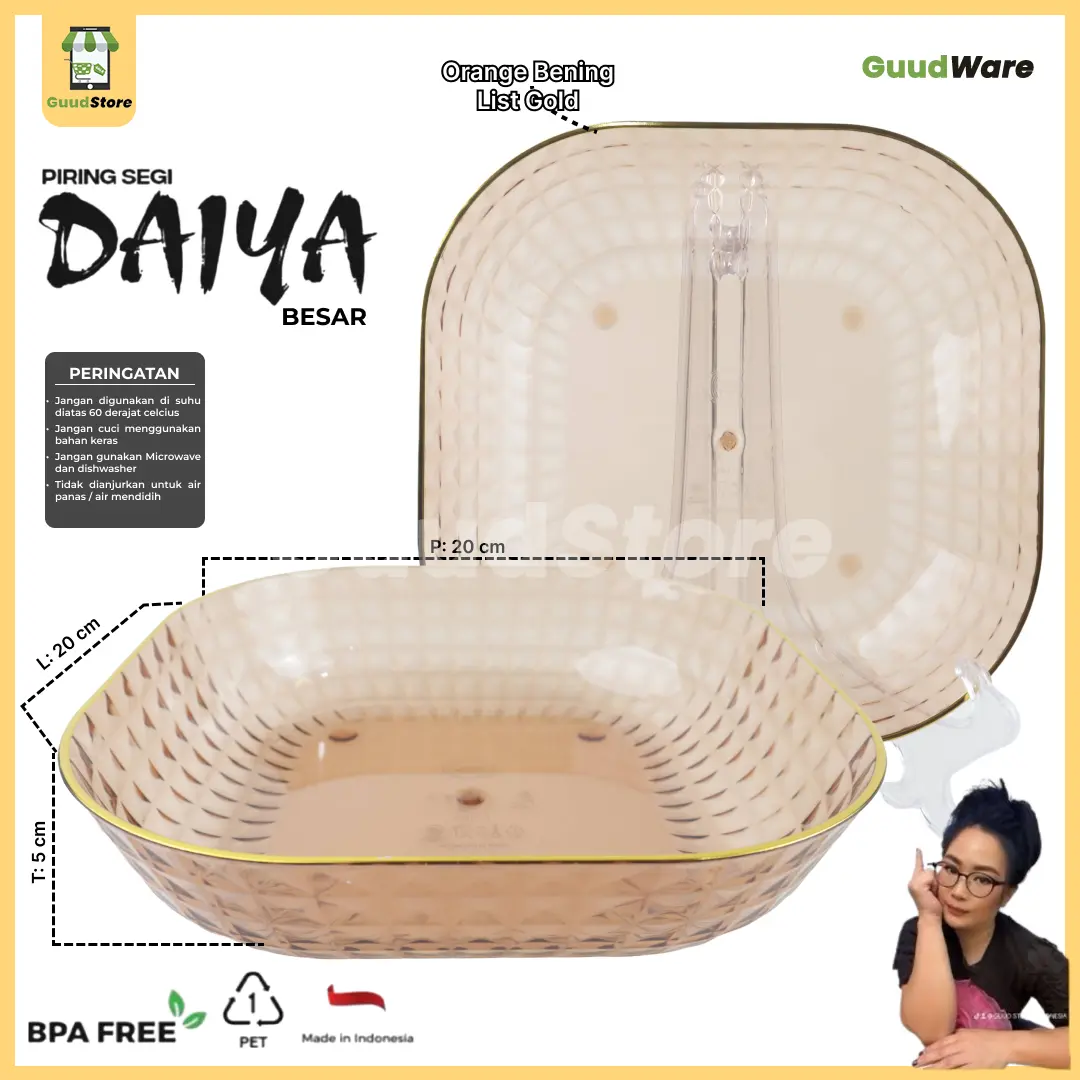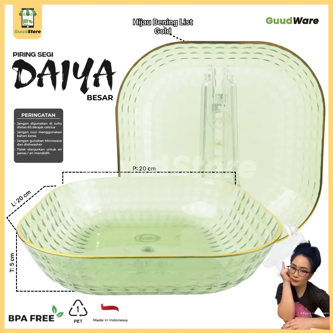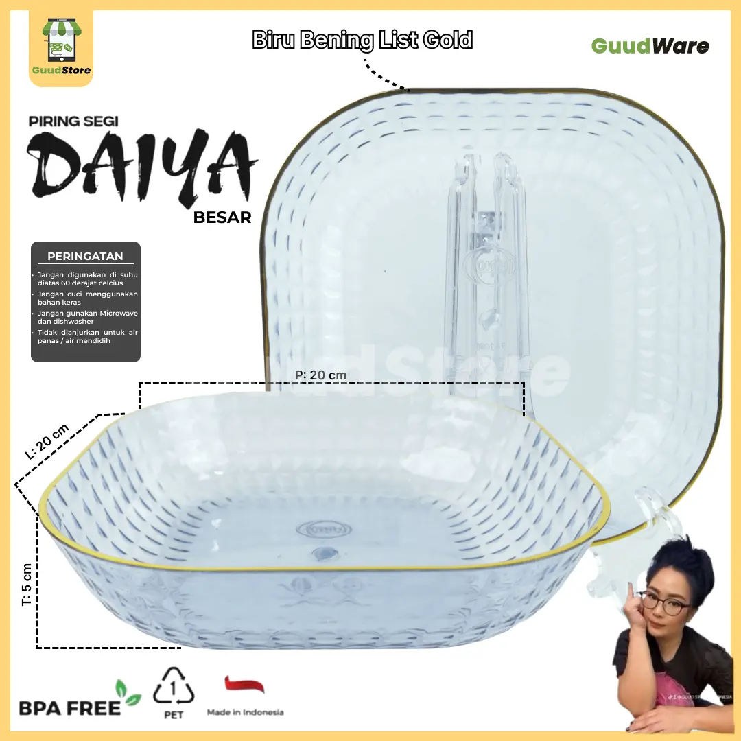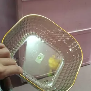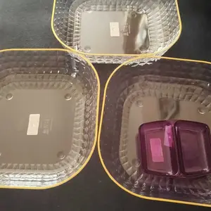 DAIYA Piring segi Empat Crystal hadir dalam ukuran besar, piring serbaguna ini yang dapat digunakan untuk berbagai keperluan penyajian makanan makanan ringan/lauk dalam jumlah besar.