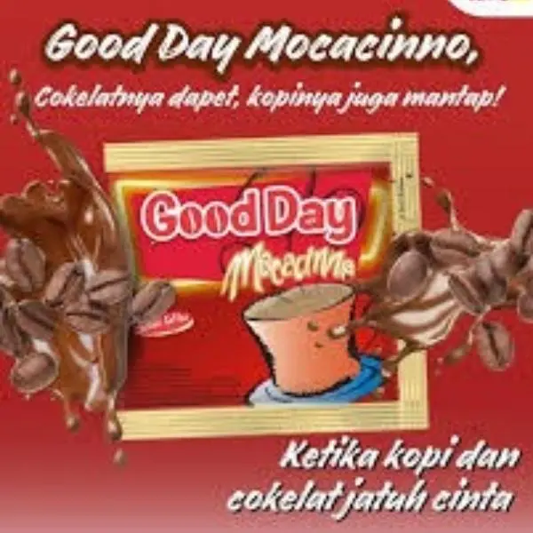 Nikmati perpaduan sempurna kopi, cokelat, dan susu dalam satu sachet! Good Day Mocacinno punya rasa manis creamy dengan aroma kopi yang nikmat, cocok diminum kapan saja.
