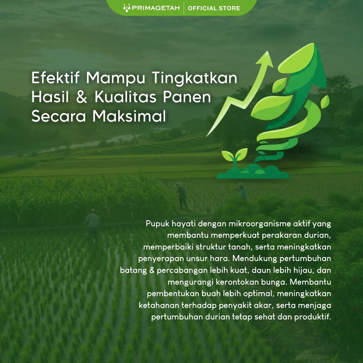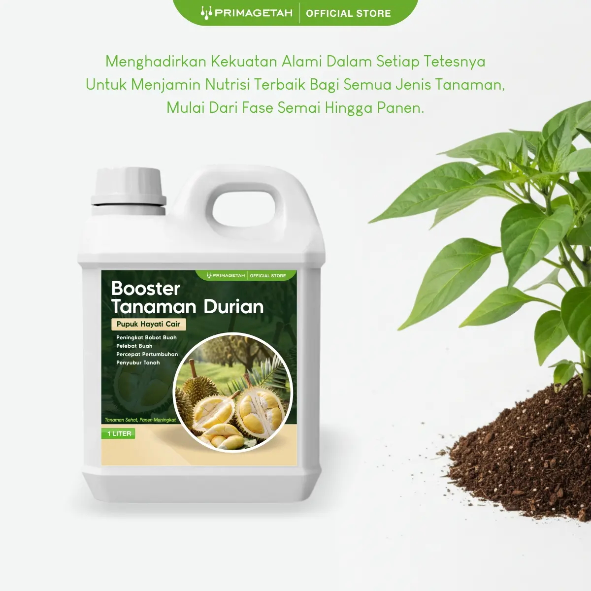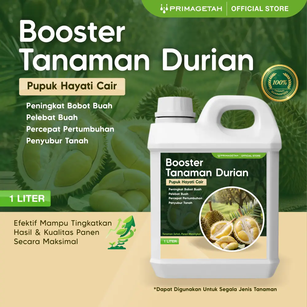 merupakan formulasi hayati premium yang dirancang khusus untuk meningkatkan pertumbuhan, kesehatan, serta produktivitas tanaman durian secara optimal, baik pada fase vegetatif maupun generatif.