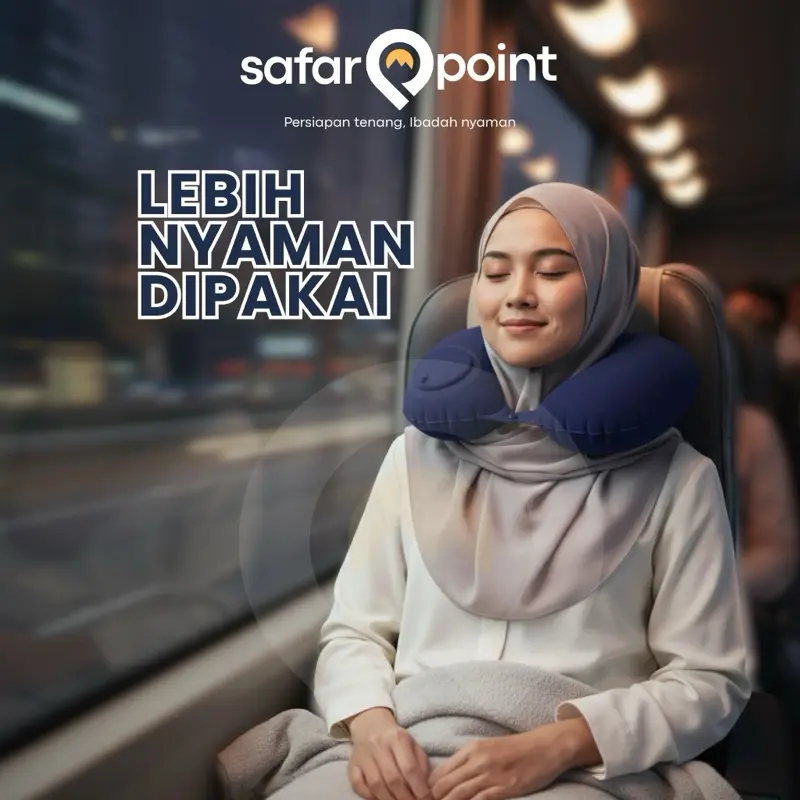 Bantal angin leher portable ini dirancang khusus untuk memberikan kenyamanan maksimal saat perjalanan jauh, terutama untuk perjalanan umroh dan haji yang membutuhkan waktu duduk lama di pesawat, bus, maupun kereta. Desain ergonomis membantu menopang leher dengan baik sehingga mengurangi pegal, nyeri, dan kelelahan.