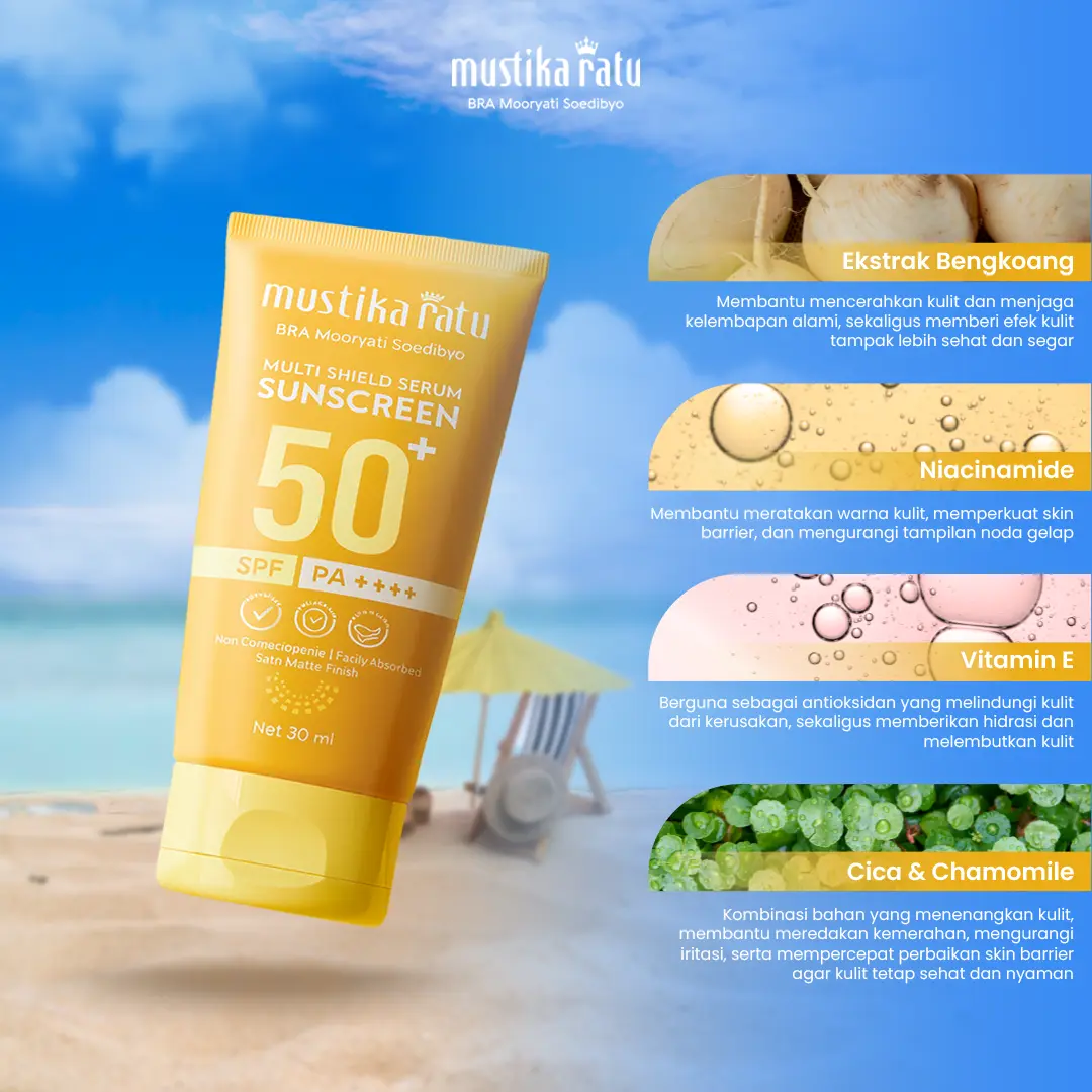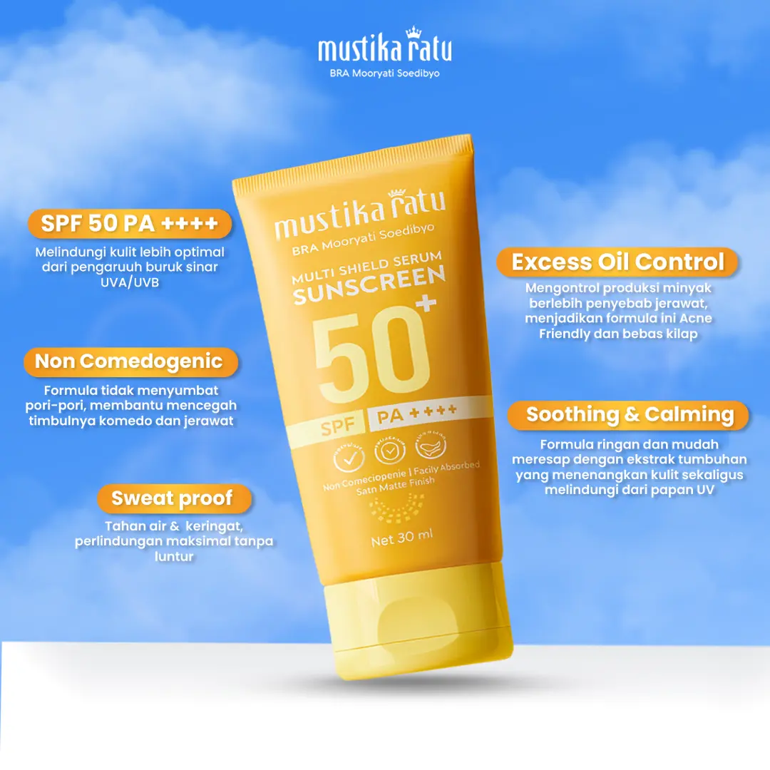 Β·Ideal untuk Sehari-hari: Cocok untuk digunakan setiap hari, [Mustika Ratu] Sunscreen Multi Shield Serum adalah pilihan tepat untuk perlindungan kulit Anda. π