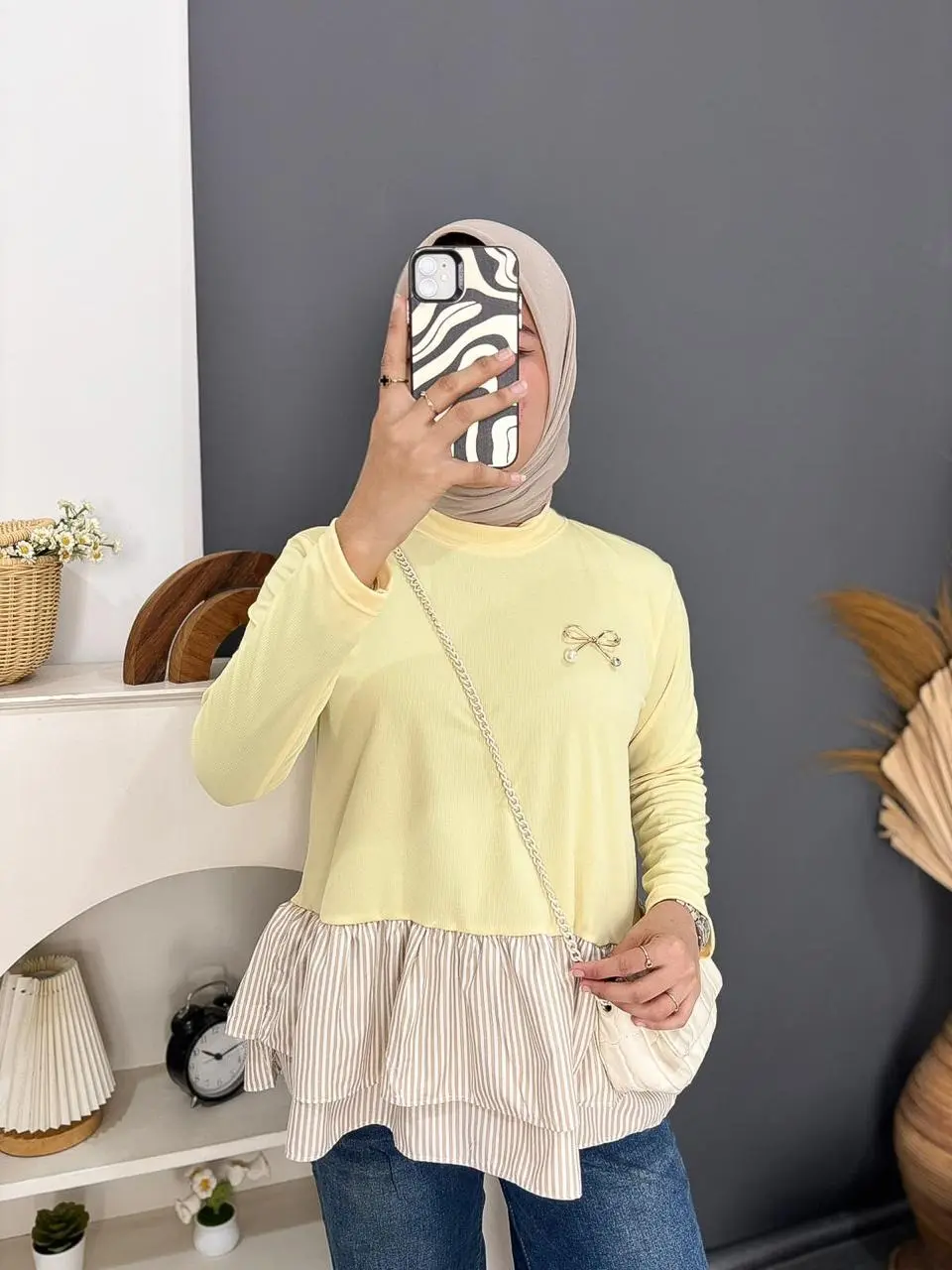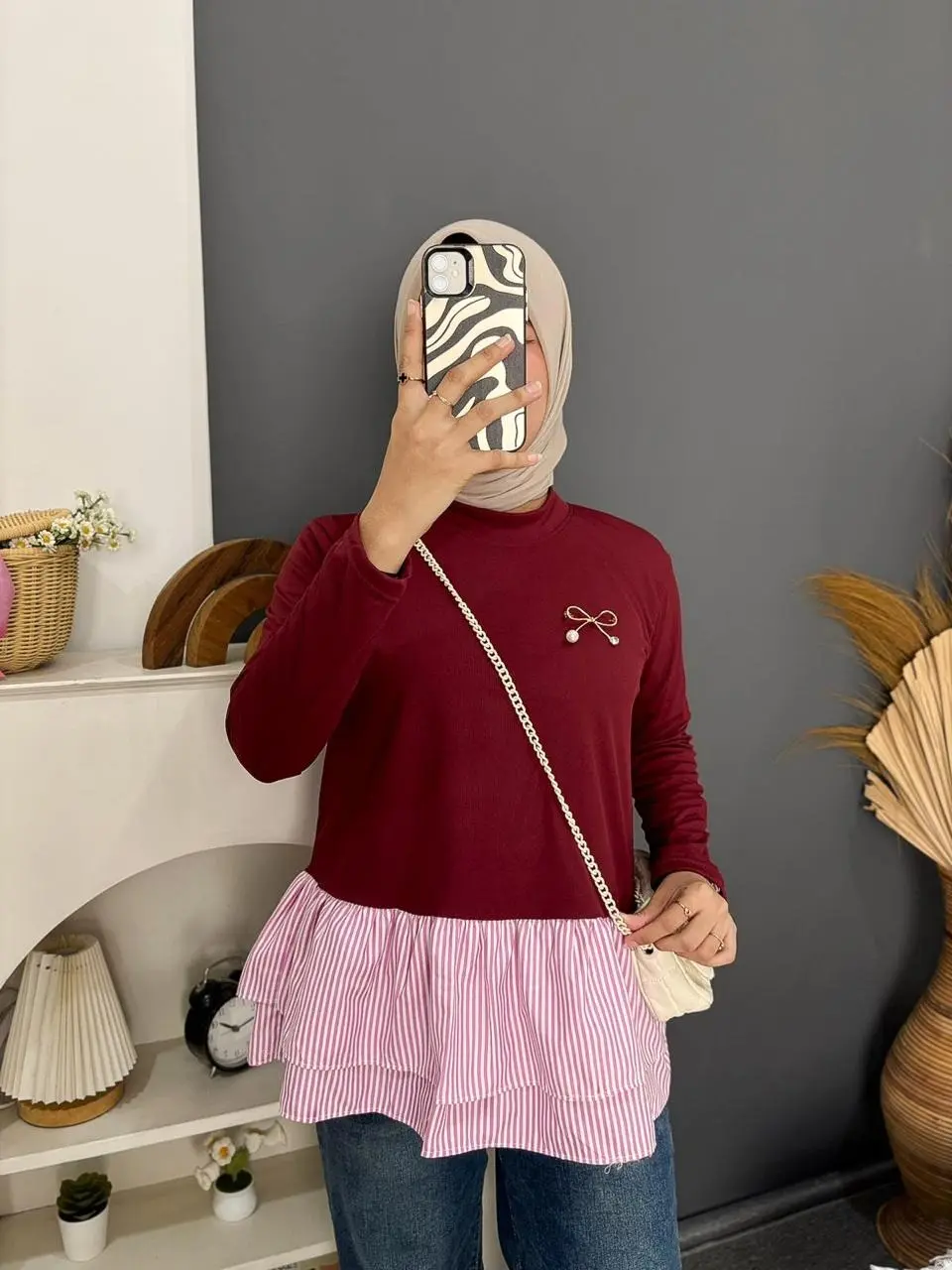 Aku suka banget,bahannya ga bikin gerah,modelnya gemesh😭😭