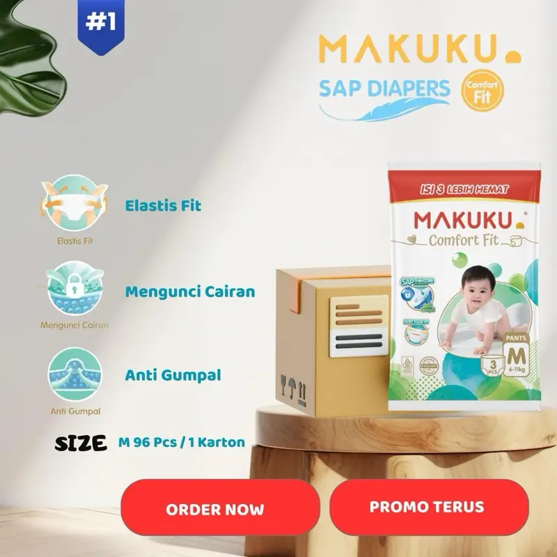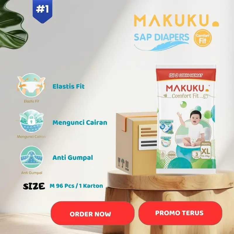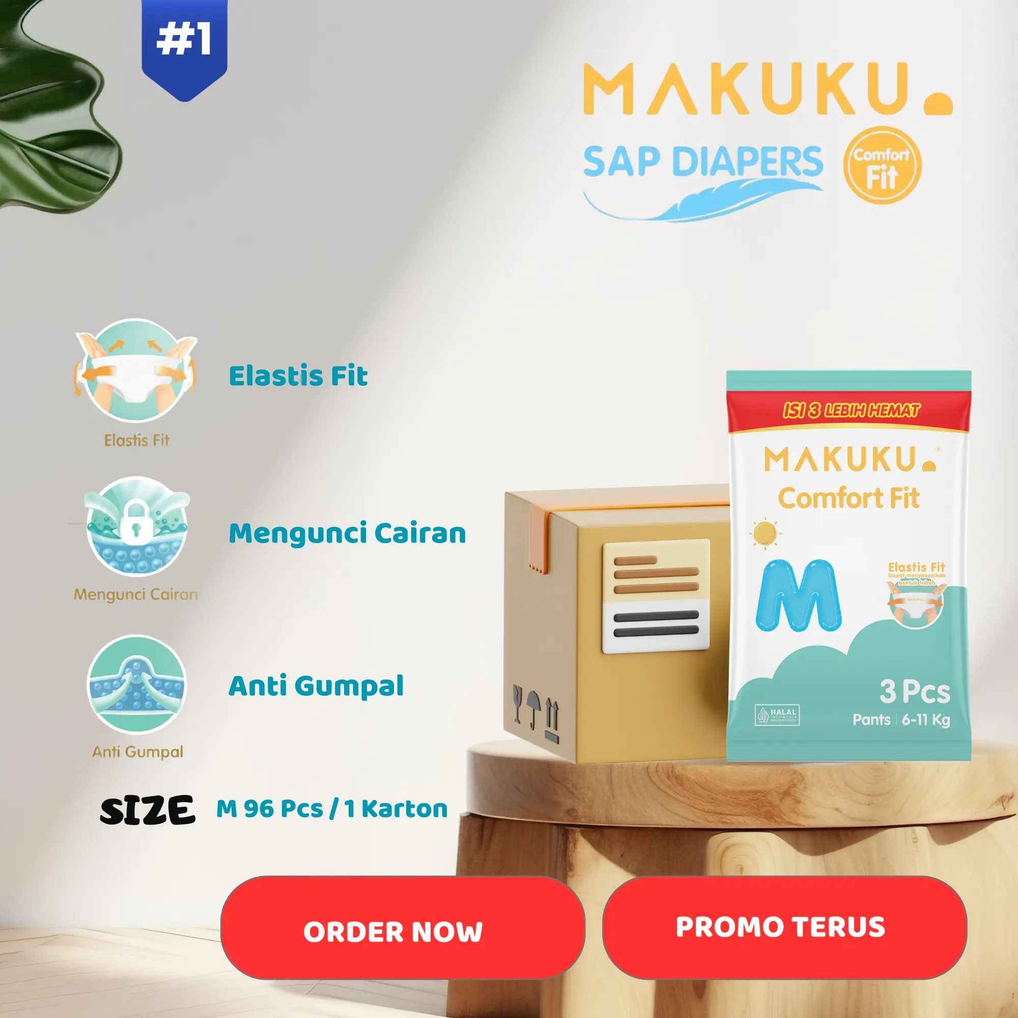 Makuku Comfort Fit memberikan kenyamanan maksimal untuk bayi Anda. Dirancang khusus mengikuti lekuk tubuh bayi, popok ini ringan, tipis, dan pas dipakai seharian tanpa membuat gerah. Cocok untuk siang maupun malam, tidur bayi tetap nyenyak dan aktivitasnya lebih bebas.