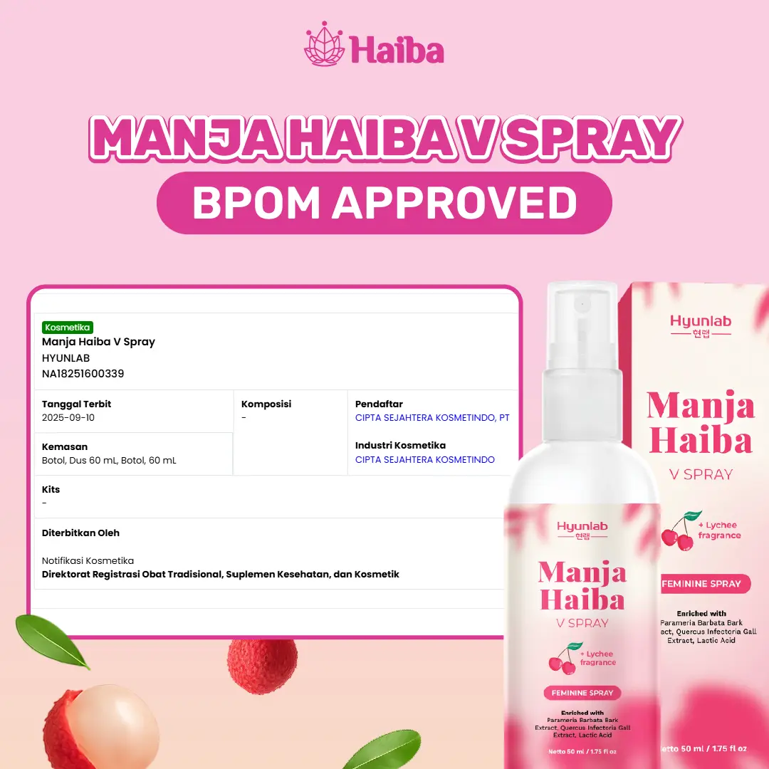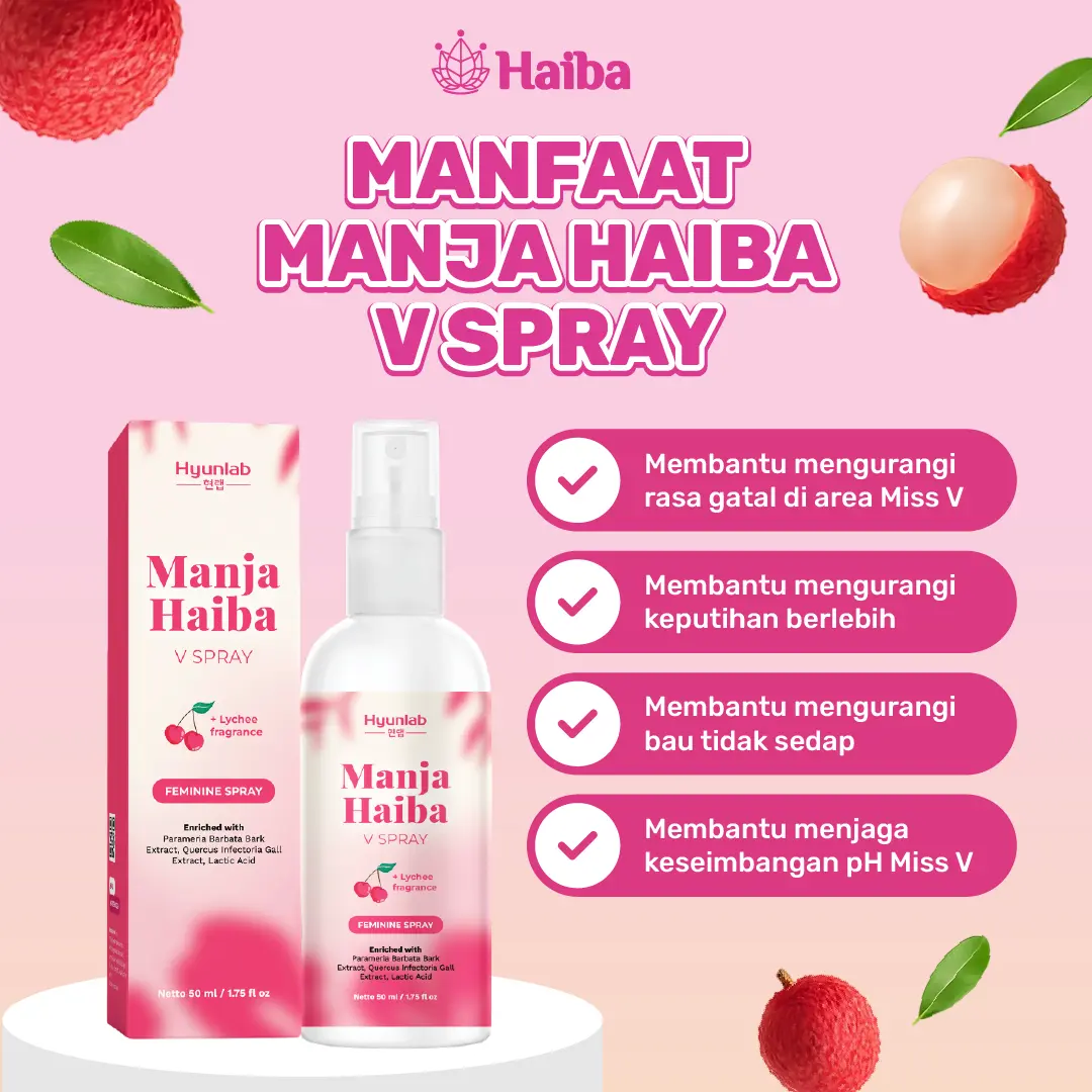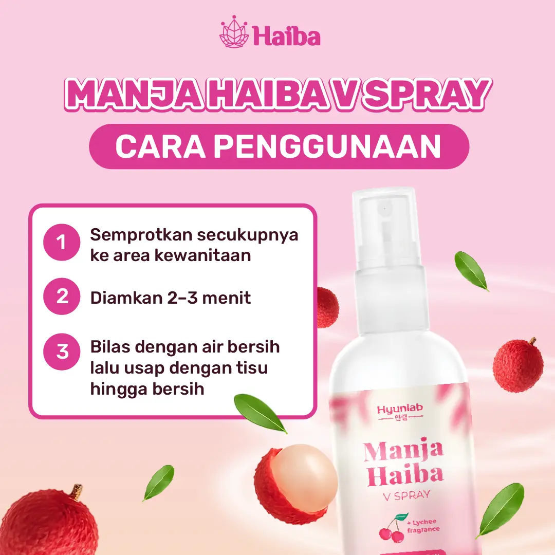 Manja Haiba V Spray adalah feminine spray dengan aroma lychee yang segar, membantu menjaga area kewanitaan tetap fresh, wangi, dan nyaman sepanjang hari.