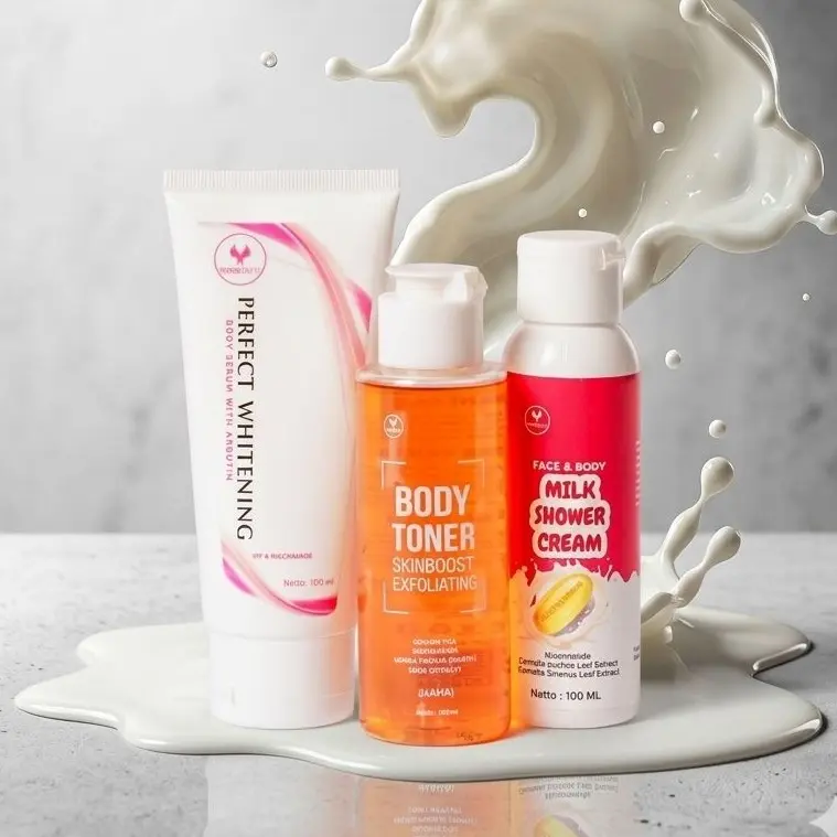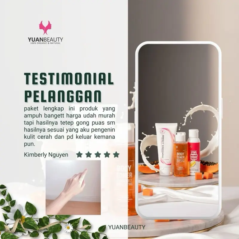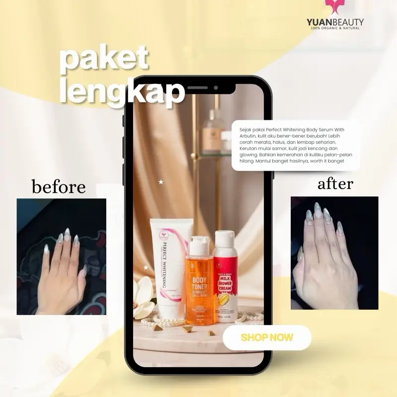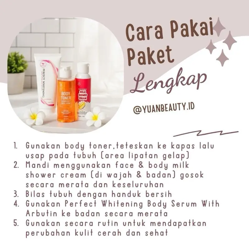 yuanbeauty paket lengkap hemat BODY TONER, MILK SHOWER CREAM , BODY SERUM WITH ARBUTIN
