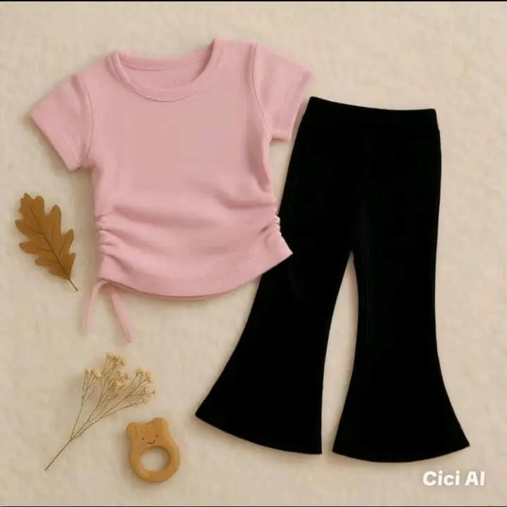·Fitur Utama: Setelan ini memiliki desain celana cutbray dan atasan serut yang menambah kesan lucu dan menarik. 🌸