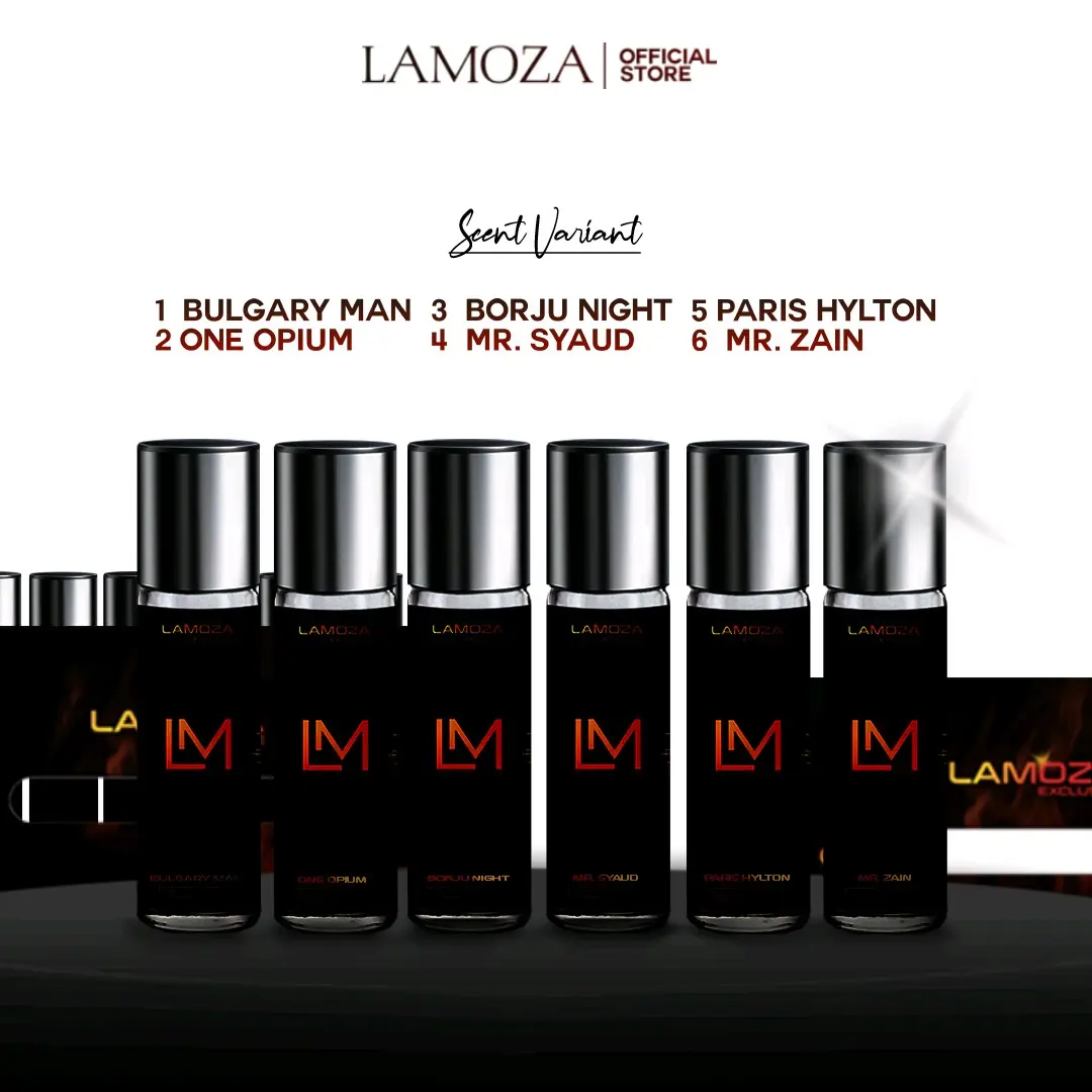 Lamoza Exclusive Male/Man adalah produk parfum yang dirancang khusus untuk pria. Produk ini memiliki 6 aroma eksklusif yang dapat dipilih sesuai dengan selera dan kebutuhan pengguna. Aroma eksklusif yang tersedia adalah